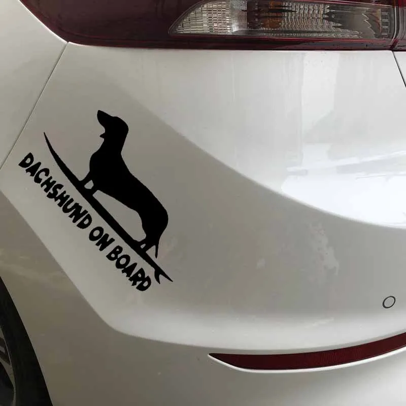 YJZT 16X8.8CM забавная наклейка с собакой виниловая Автомобильная наклейка украшение окна такса на доске черный/серебристый C24-1624