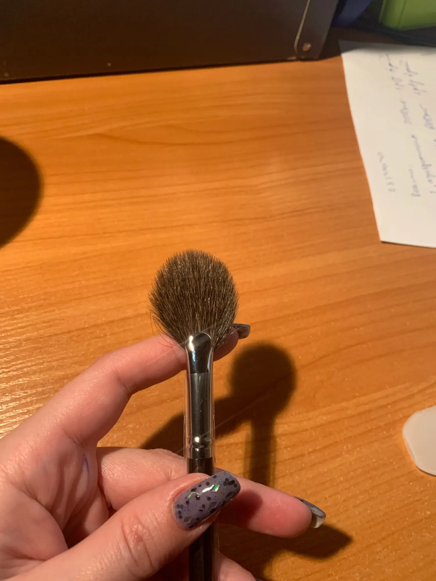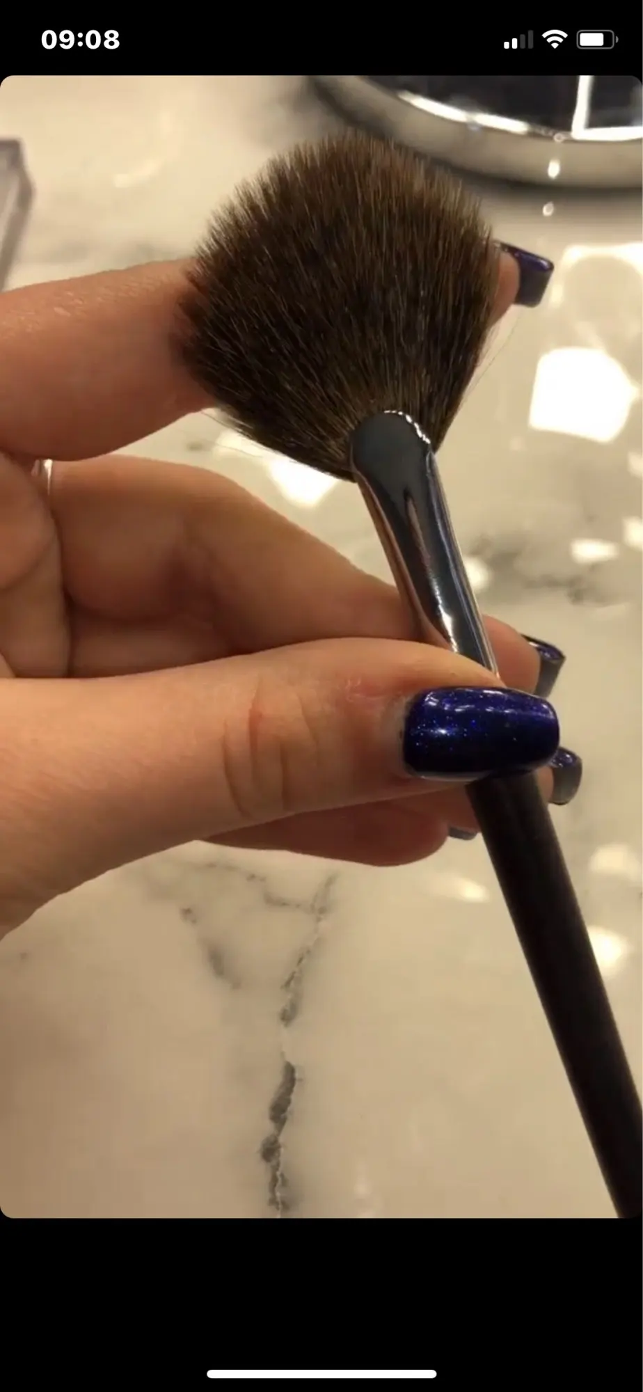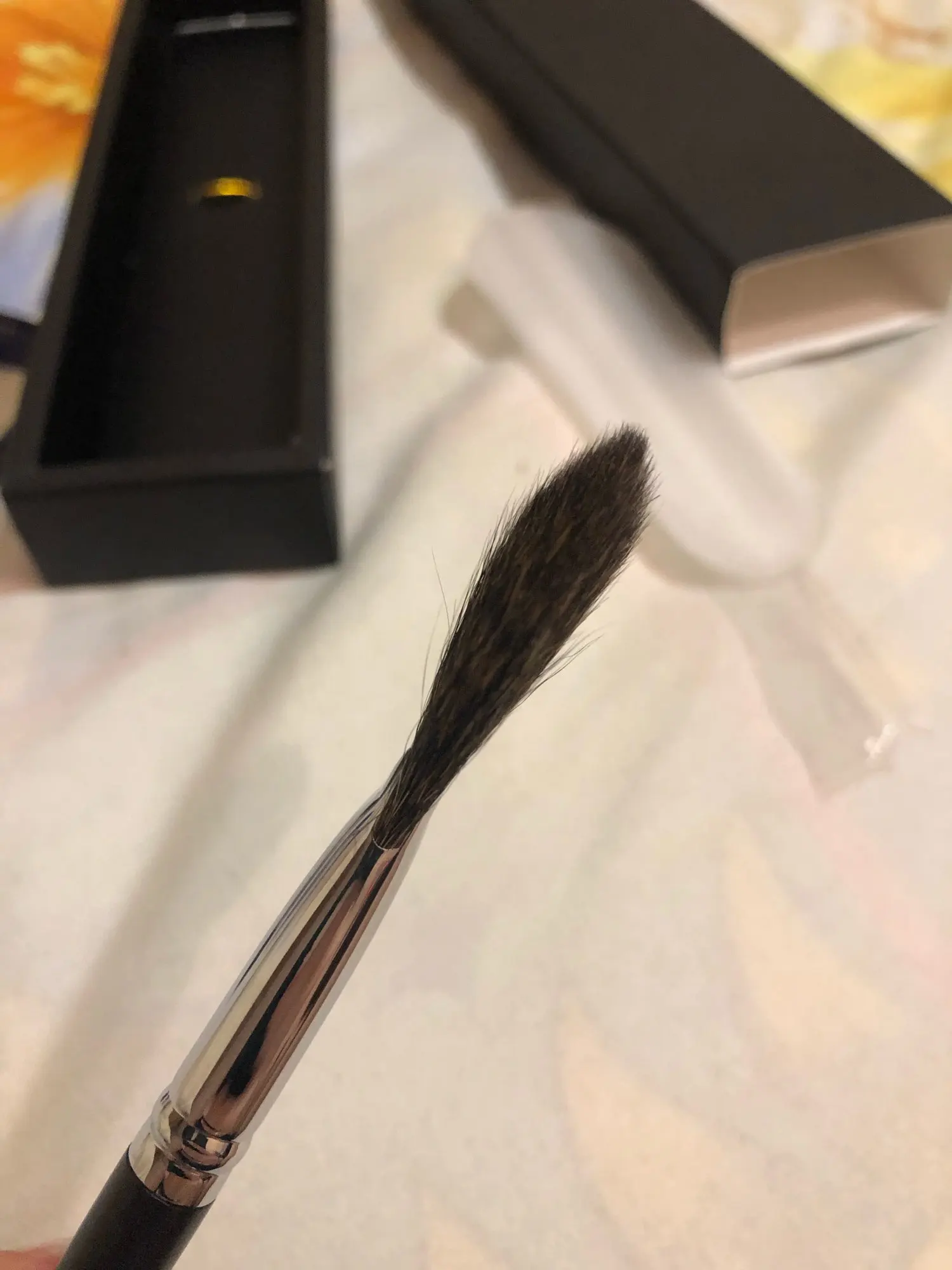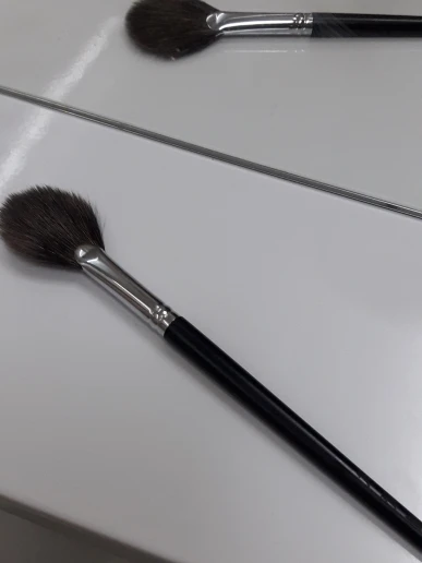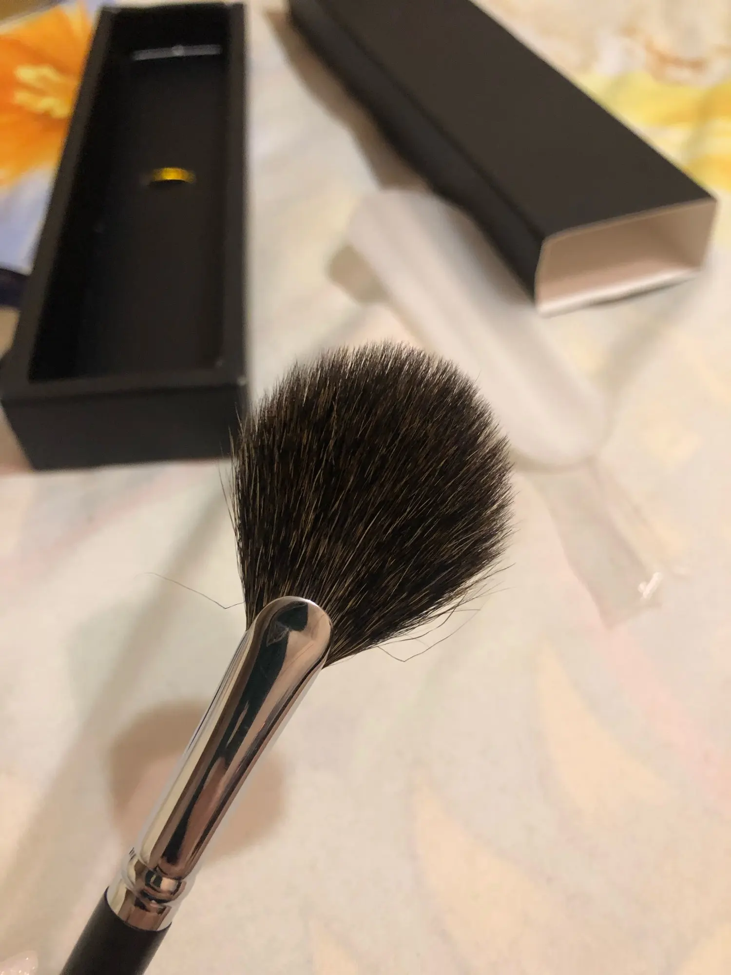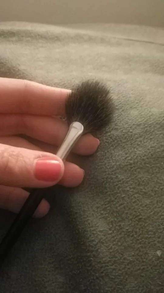 Отличная кисть для хайлайтера ♡ ей вы именно как бы вполировуете хайлайтер в кожу, конечно это можно делать и боковинкой обычной кисти, но специальной кистью как эта , делать это удобней...безумно мягкая,прям очень, уверена, это настоящий ворс белки...советую к покупке♡♡♡