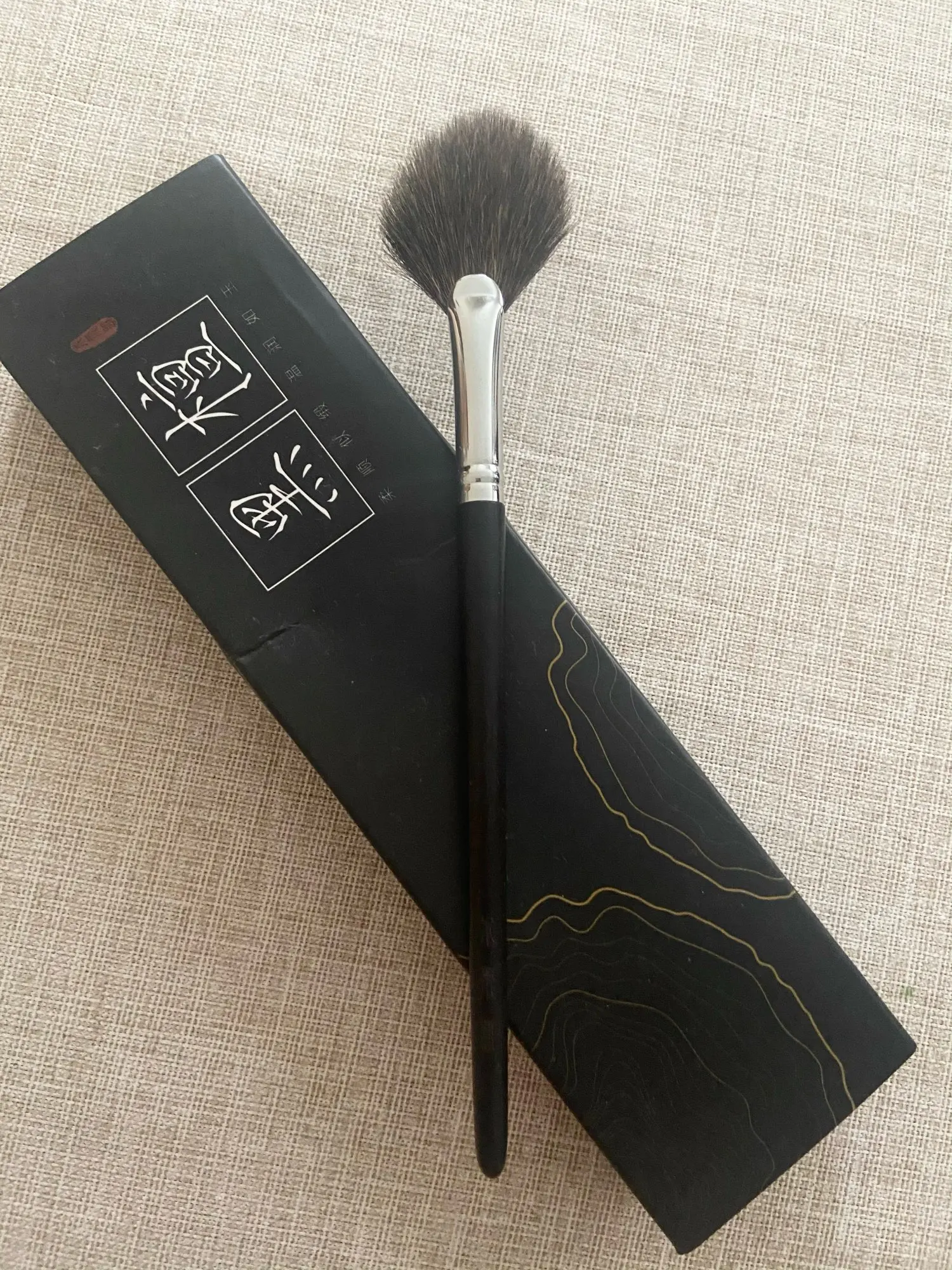 Анатомически очень правильная и удобная кисточка. Проходится ровно по скуле. Набита плотно, но не жестко. Упакована в красивую коробочку, что важно если Вы готовите подарок. Посылка дошла меньше чем за месяц, хорошо упакованная, без повреждений. Я рекомендую этот товар и этого продавца.
