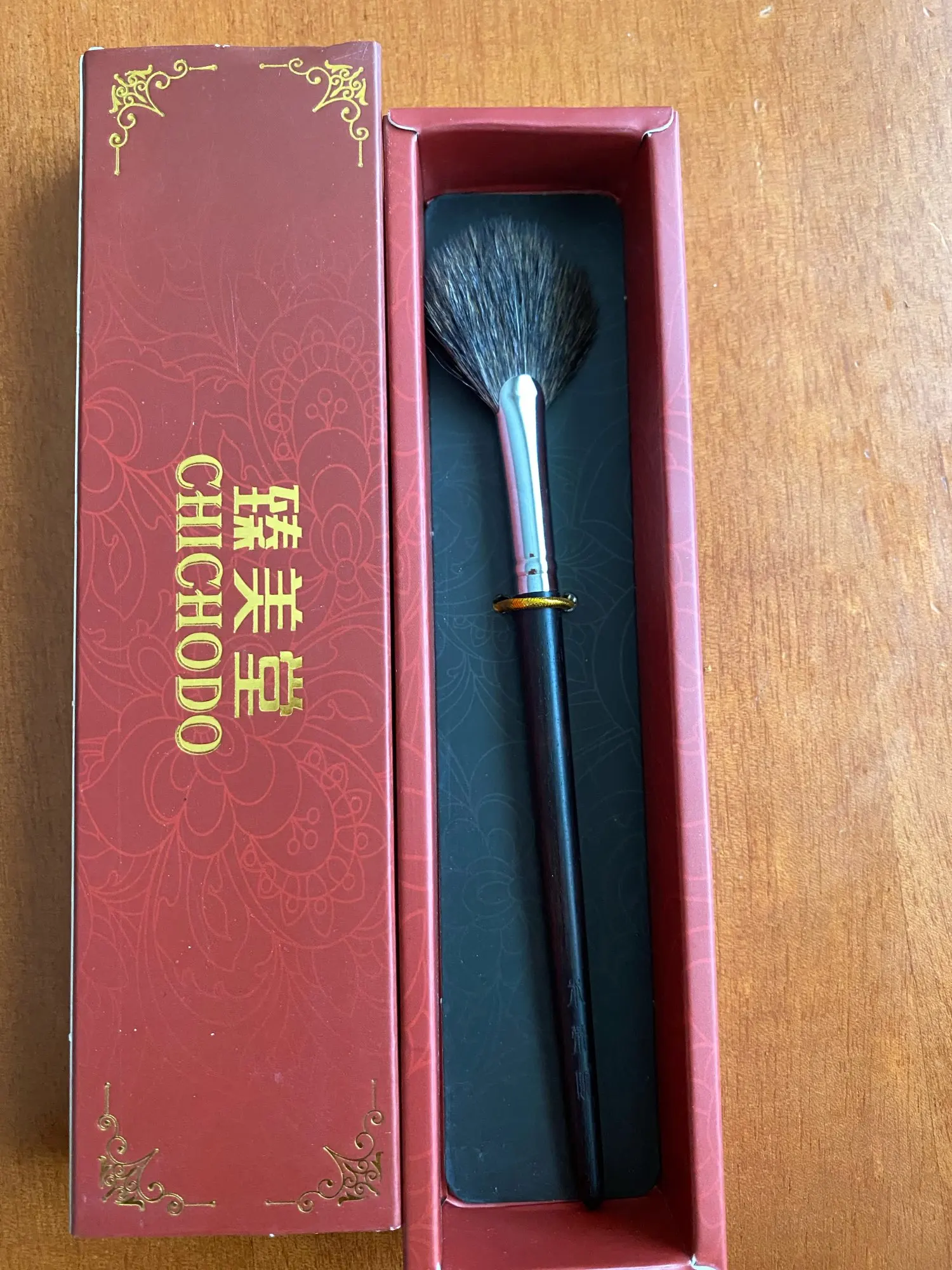 кисть пришла меньше чем за 2 недели. в красивой матовой упаковке. в слюде. кисть очень мягкая невесомая ,для хайлайтера идеально