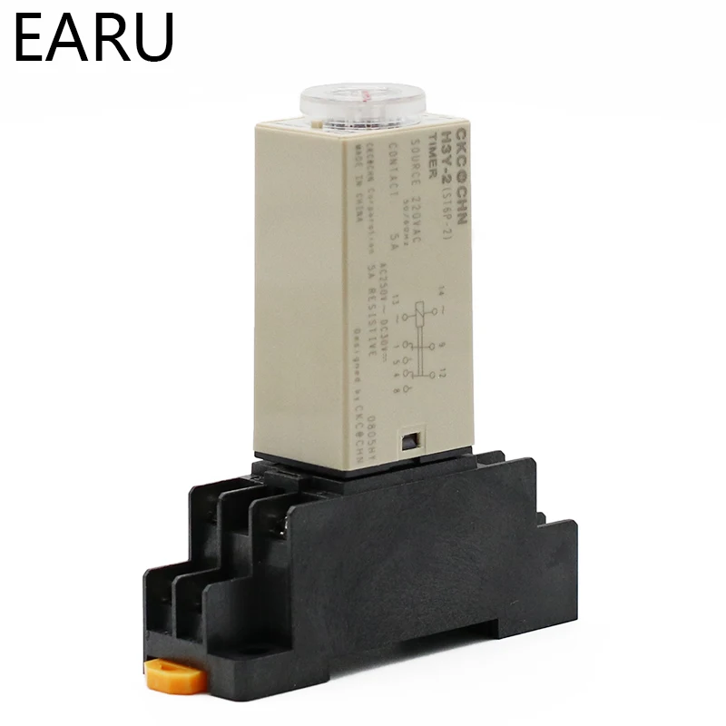 Релейный переключатель времени с задержкой переменного тока 220 В, 1 шт., Регулируемый переключатель времени 0 - 30 минутсекунды, 5A с базовой розеткой, вращающейся ручкой DPDT