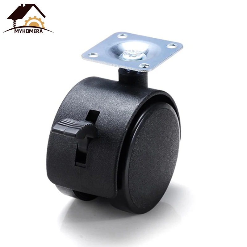 Колесо для мебели Myhomera, колеса для стульев, пластина 30 мм, 40 мм, 48 мм, с тормозом, поворотные колеса, сменные черные колесики для тележки