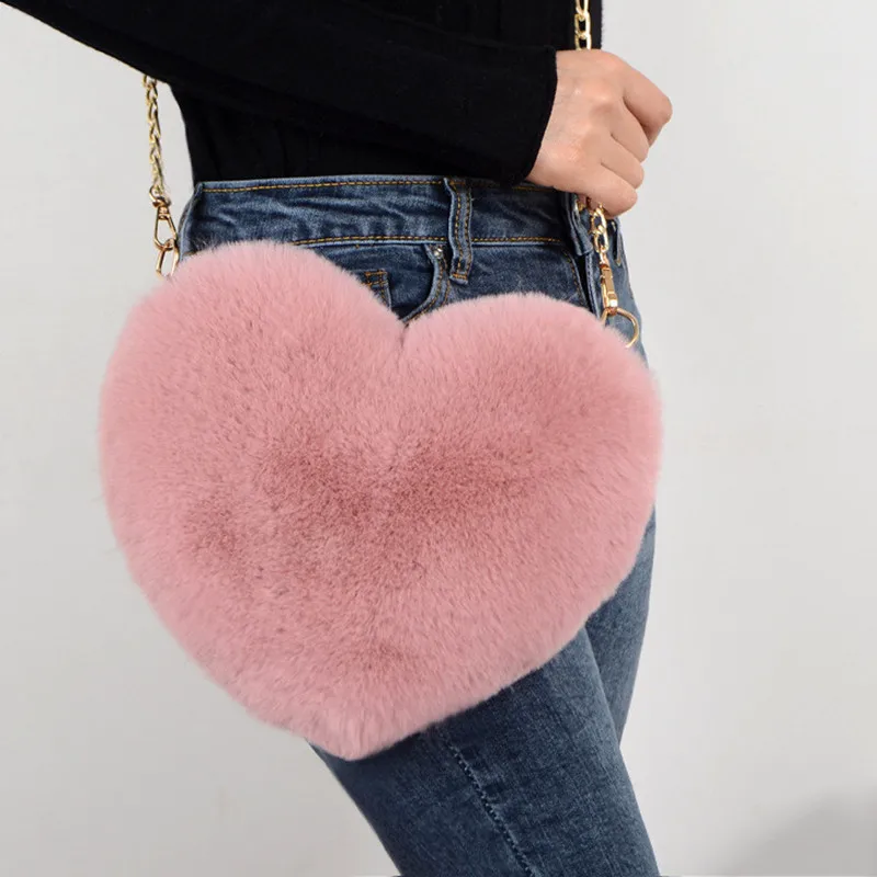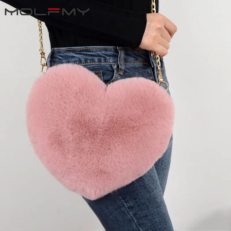 2021 зимняя сумка из искусственного меха в форме сердца для женской сумки через плечо Kawaii для девушек большая сумка-мессенджер через плечо Bolso