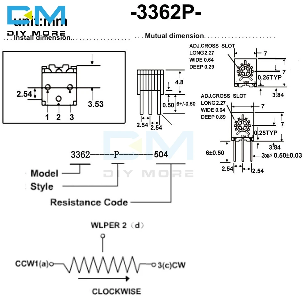5 шт.партия, резьбовой Потенциометр 3362P, переменный резистор 100R 200R 500R 1K 2K 5K 10K 20K 50K 100K 200K 500K 1M Ohm Cermet Trimpot