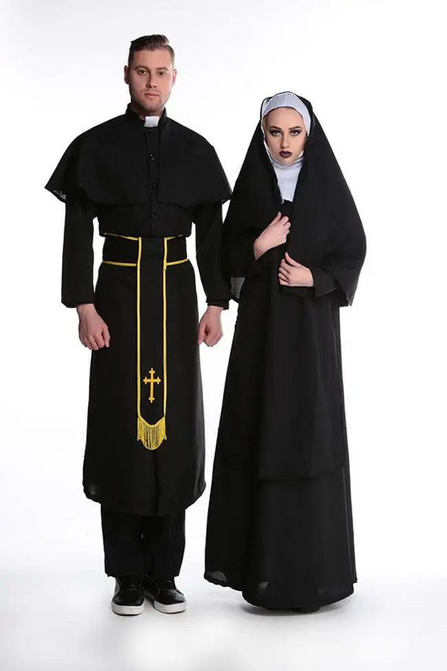 Взрослый костюм священника, крестного отца, святой матери, монахини, пары, костюм Пресвятой Девы Марии вечерние, маскарад, костюмы на Хэллоуин для женщин и мужчин