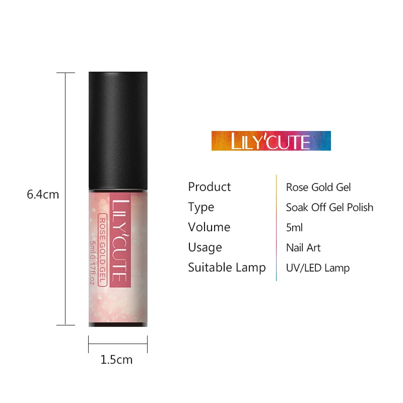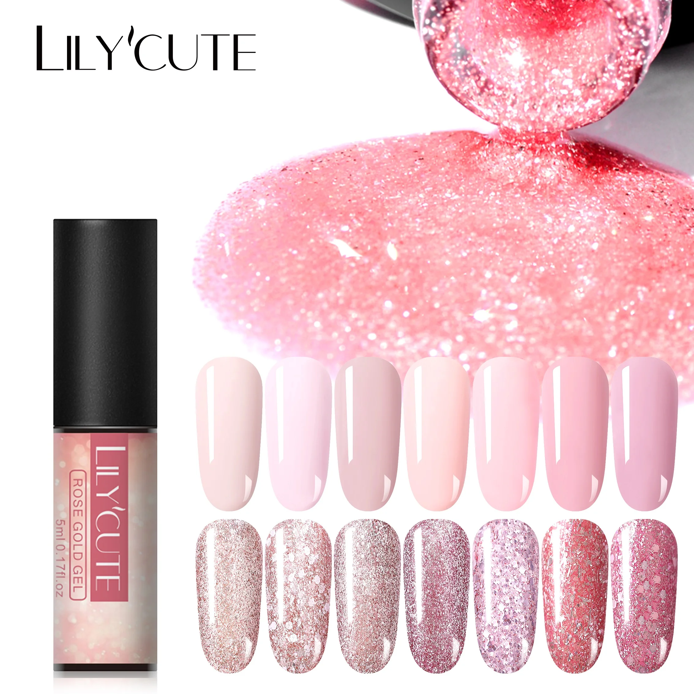 Уф-гель-лак LILYCUTE цвета розового золота, отмачиваемые блестки для ногтей, блестящий уф-гель-лак, 5 мл, гель-лак для нейл-арта