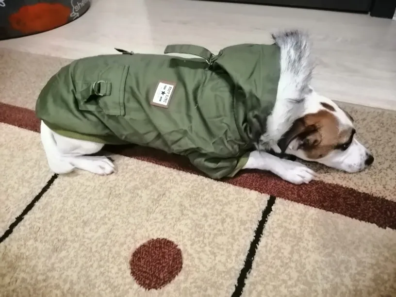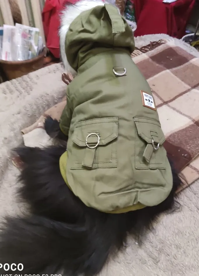 Курточка просто великолепная, меня приятно удивило качество, она очень тёплая, но размер я взяла слишком большой, так что, если у вас взрослая собака, то берите точно по меркам. Куртка тёплая, карманы настоящие.