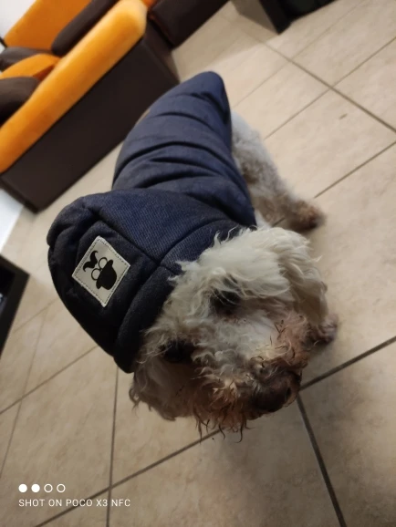 Красивая куртка, она пухленькая и теплая. Я купил размер XL для моего Бишон Мальта в 4 кг, и он идеально подходит для него. Очень доволен заказом.