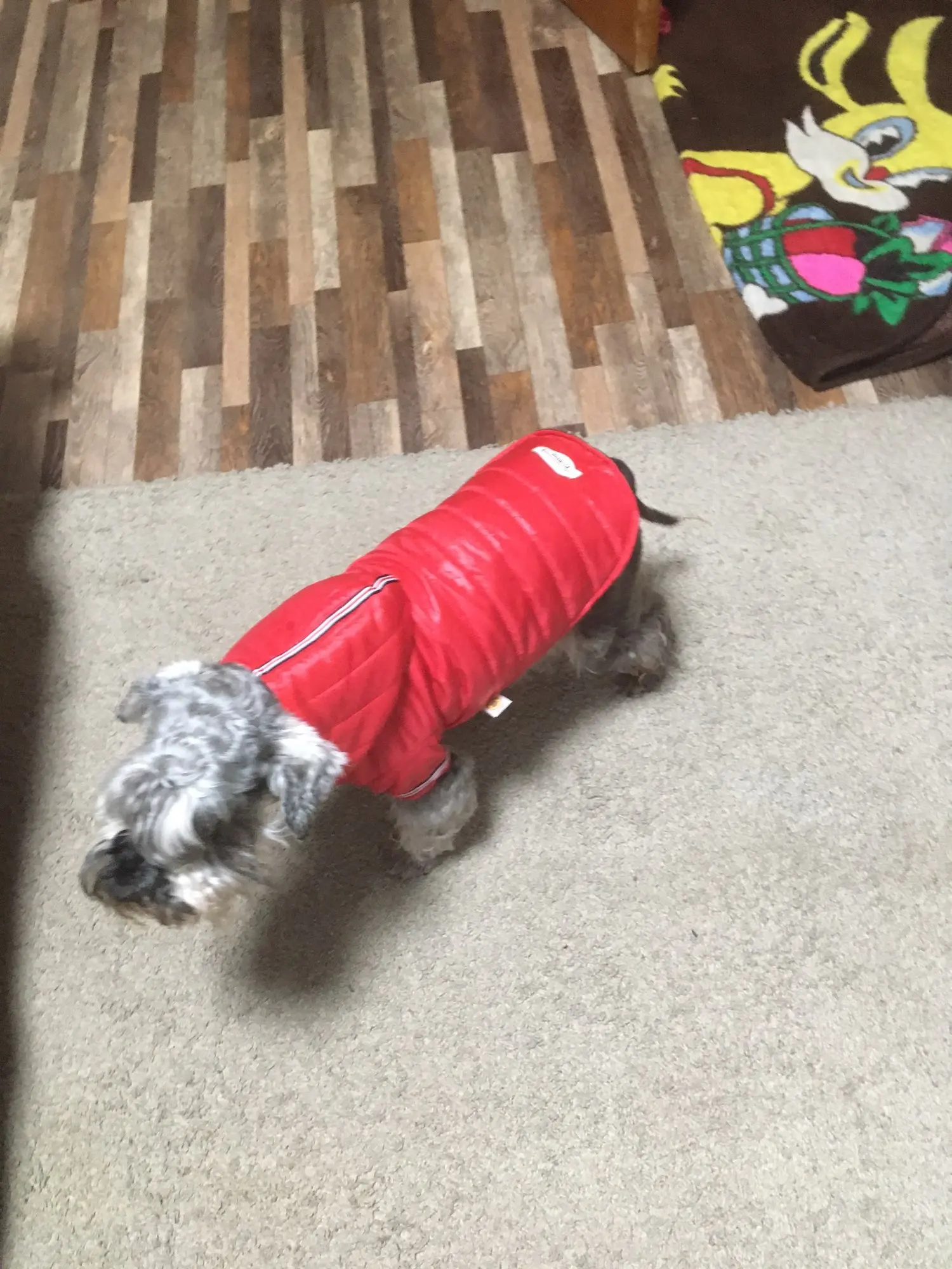 Тканевая куртка. На цвергшнауцера села хорошо. Но так как просто тканевый верх, оказалась неактуальной.