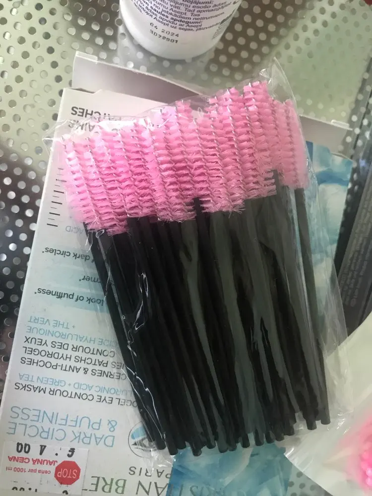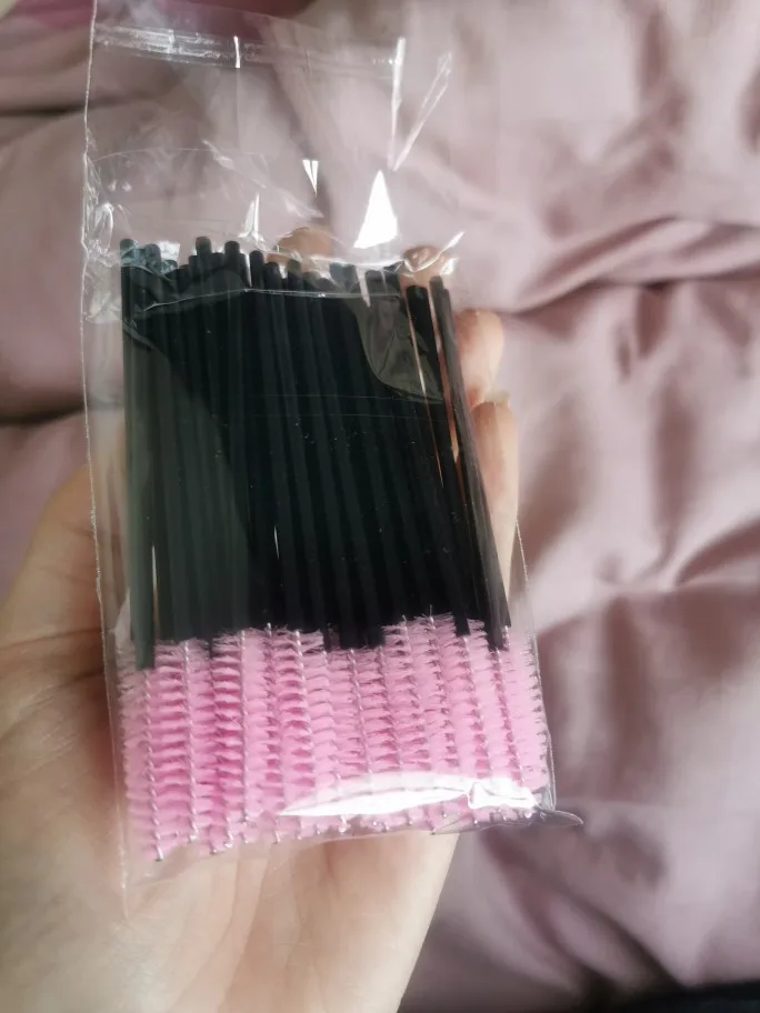 Набор щеточек-аппликаторов для нанесения туши на брови и ресницы, 50 шт, возможные цвета: черный синий, желтый розовый.