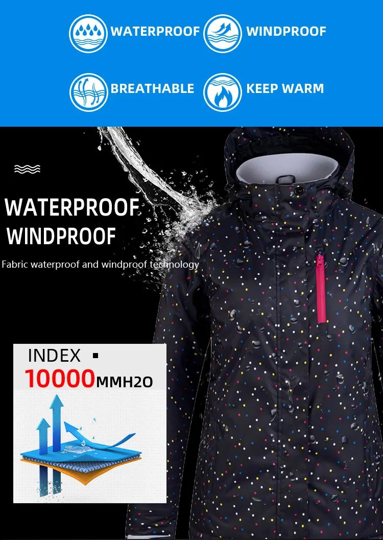 Зимняя женская куртка и штаны для женщин, теплые, водонепроницаемые, ветрозащитные костюмы для катания на лыжах и сноуборде, Женское лыжное пальто, горнолыжный костюм