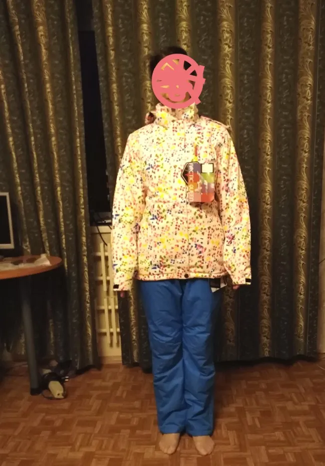 Всё как описано, костюм норм, да нитки кое-где торчат, и в одном кармане дырка, видно непрошили. Но блин у нас в магазинах тоже самое стоит в два-три раза дороже, так что за такой ценник просто огонь. Сама ткань и штанов и куртки норм. Все замки норм, заклёпки норм. Взяла L на рост 176, ОГ 90, бедер 96. По размеру как раз, даже рукава по длине норм, штаны слегка коротковаты, но это если придираться. Всё сидит хорошо. НО под него особо ничего не одеть уже, брала катать на борде и лыжах, так что придется заказывать опять уже на размер больше. Куртка кстати попу не прикрывает (если кому важно)