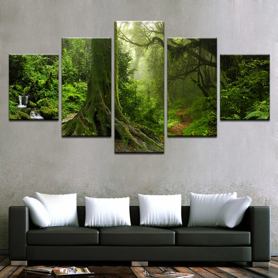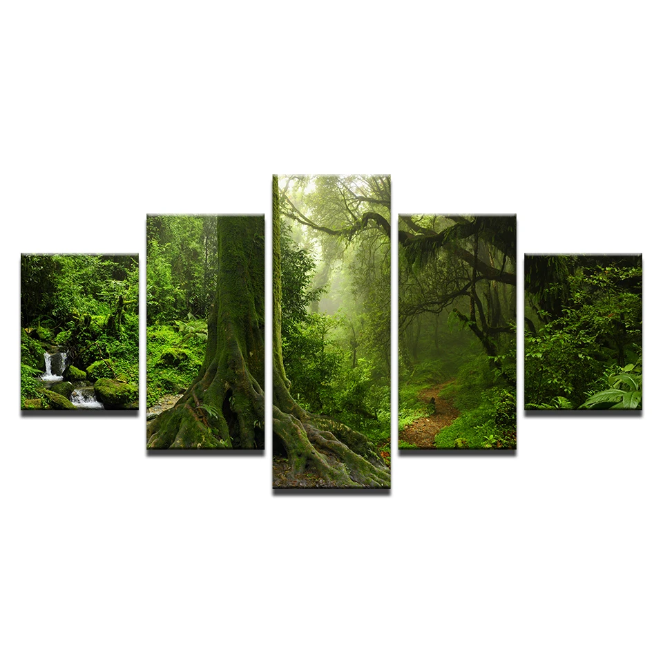 Картина на холсте HD с изображением зеленых старых корней деревьев, живых в лесу, из единственных 5 панелей, картины для украшения стен