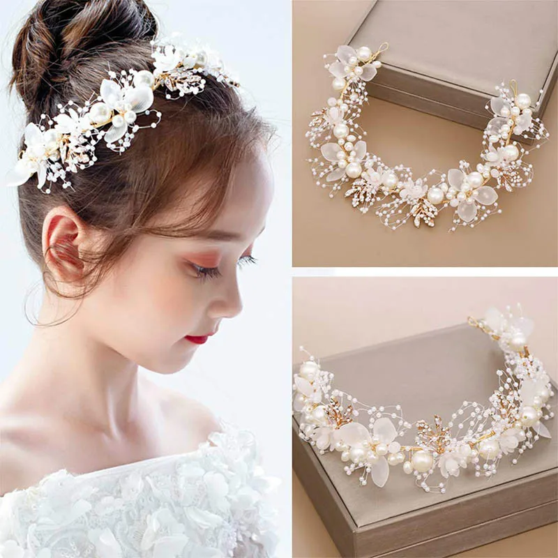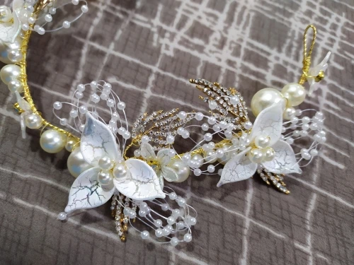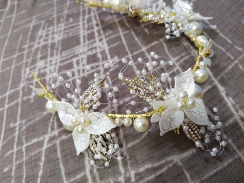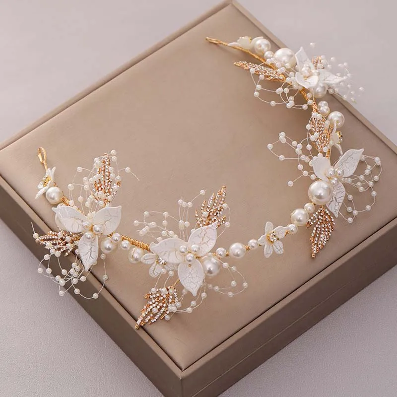Повязка на голову женская, с искусственным жемчугом и цветами