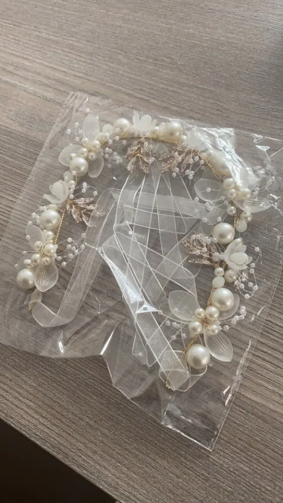 Великолепная Свадебная повязка на голову! Намного красивее, чем на фотографиях! Очень хорошо упаковано и коробка тоже Великолепная! Женитесь, и это будет выглядеть очень мило! И коробка будет чудесной для хранения после свадьбы. ** игнорируйте мои жирные волосы **