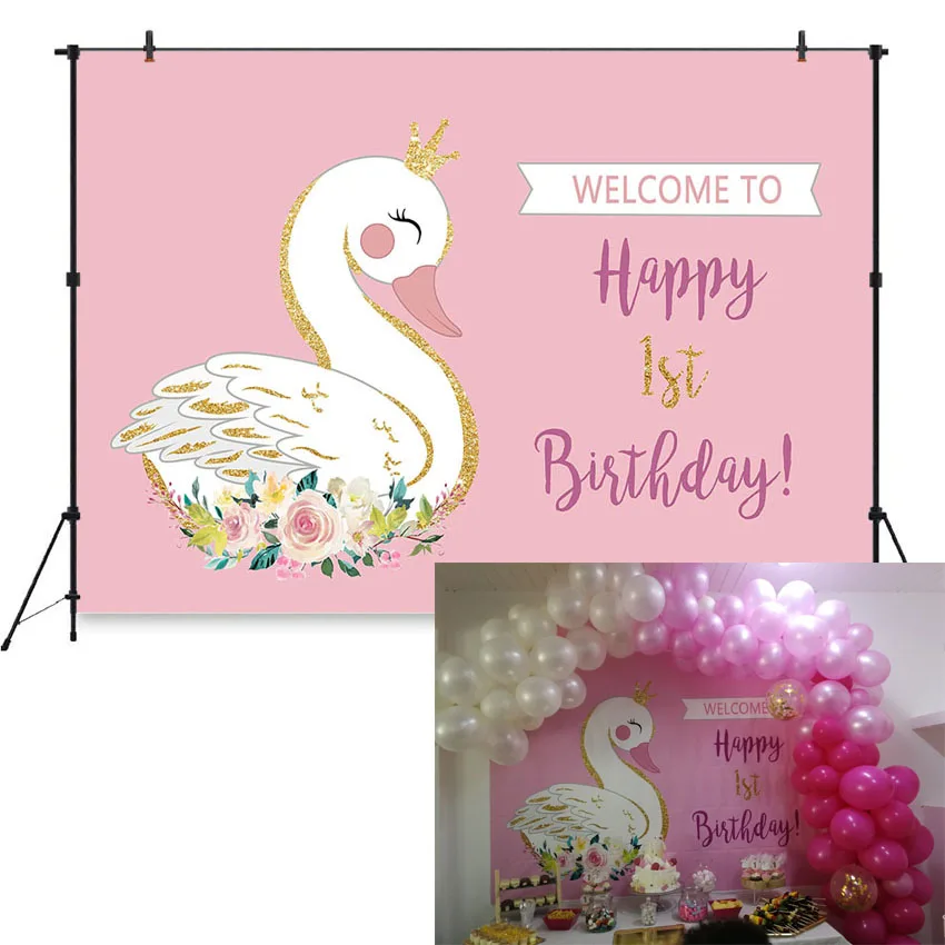 Фон для фотосъемки детей в студии с изображением короны лебедей на день рождения