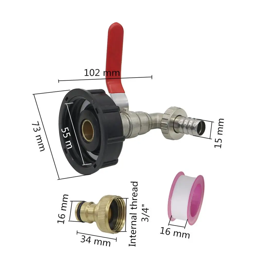 Этот адаптер резервуара IBC преобразует фитинг 2,36 дюйма резьба NPT "папа" в латунный садовый фитинг шаровой кран для шланга/кран 1/2 дюйма.