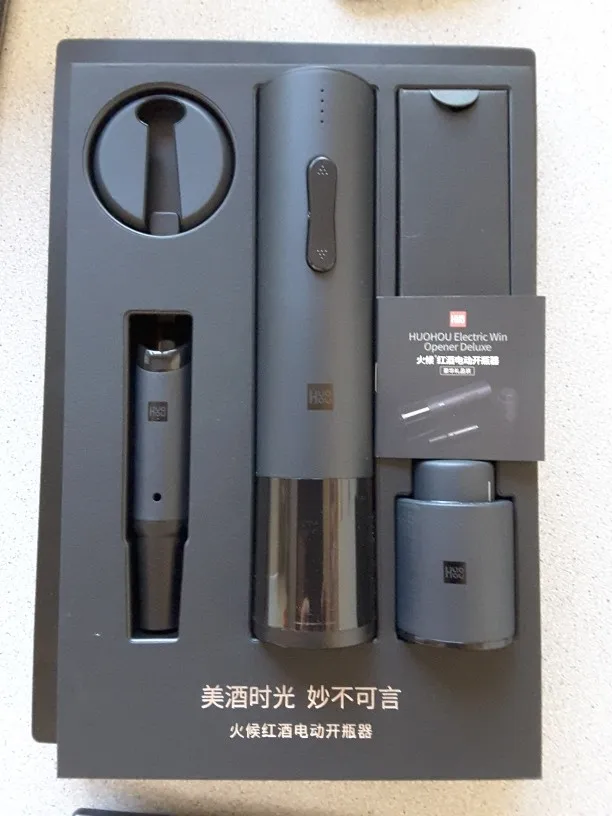 Штопор очень качественный! У меня был не набор, поэтому коробка была обычная.(только для транспортировки). Заказ получил очень быстро. Одно огорчило, на изделии нет логотипа XIAOMI. Продавца рекомендую.