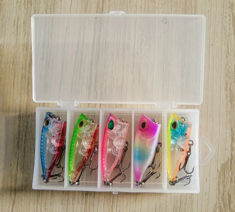 Набор рыболовных приманок Mini Popper, 5 шт., 4 см, 3,5 г, с коробкой, воблеры, приманки для ловли карпа на вершине, снасть искусственные