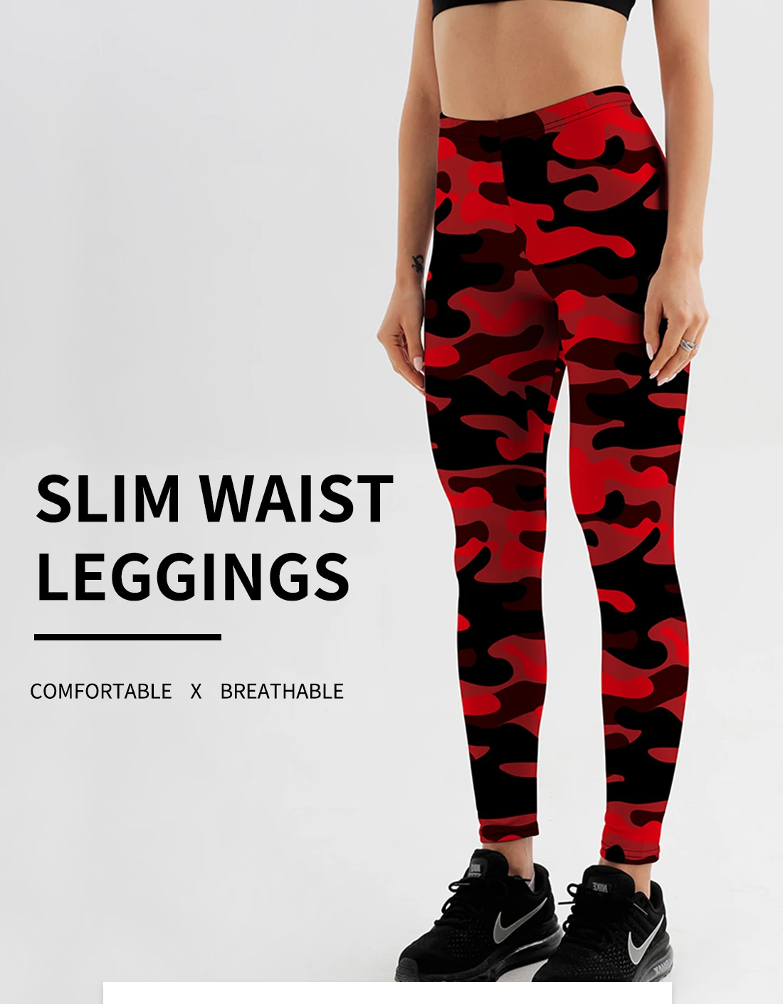 Новые модные красные дышащие леггинсы для фитнеса из полиэстера с камуфляжным принтом, спортивная одежда, эластичные тянущиеся леггинсы для тренировок
