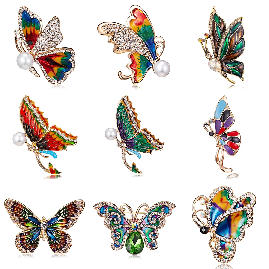 RINHOO Стразы Броши с насекомыми для женщин и мужчин большая эмалированная брошь в форме бабочки с кристаллами булавка модные ювелирные изделия для вечеринки значок для воротника шарфа