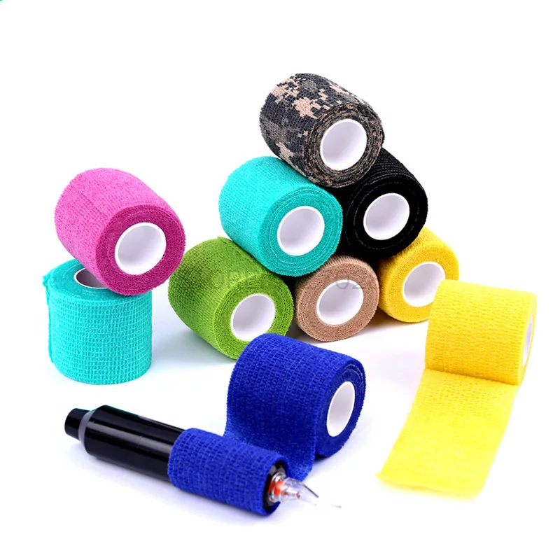 Одноразовая самоклеящаяся эластичная бандажная лента для ручки с трубкой для затягивания тату-аксессуаров, случайный цвет x1