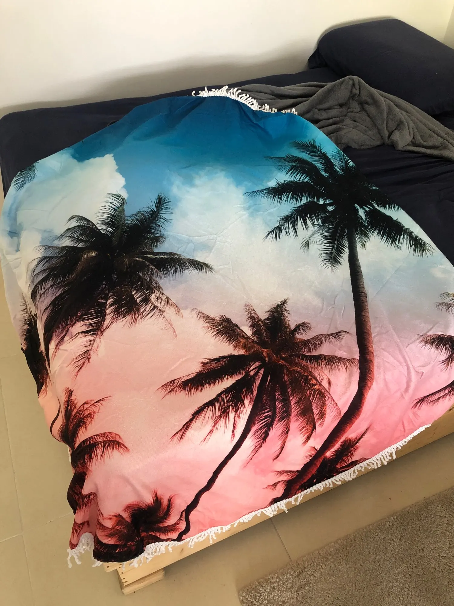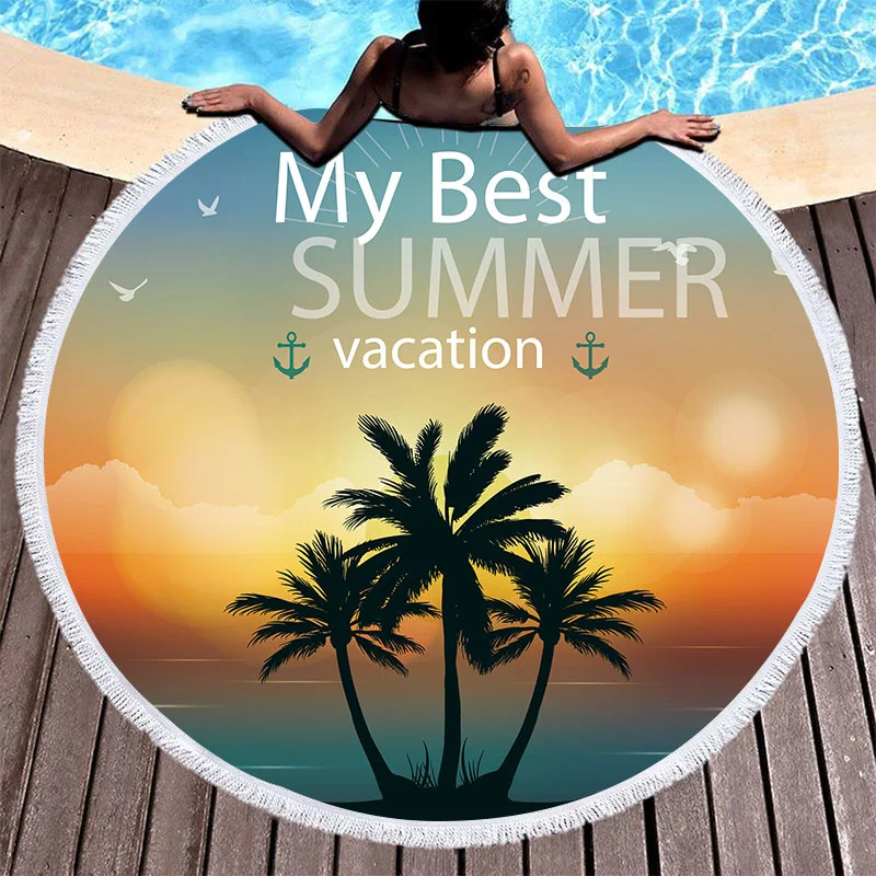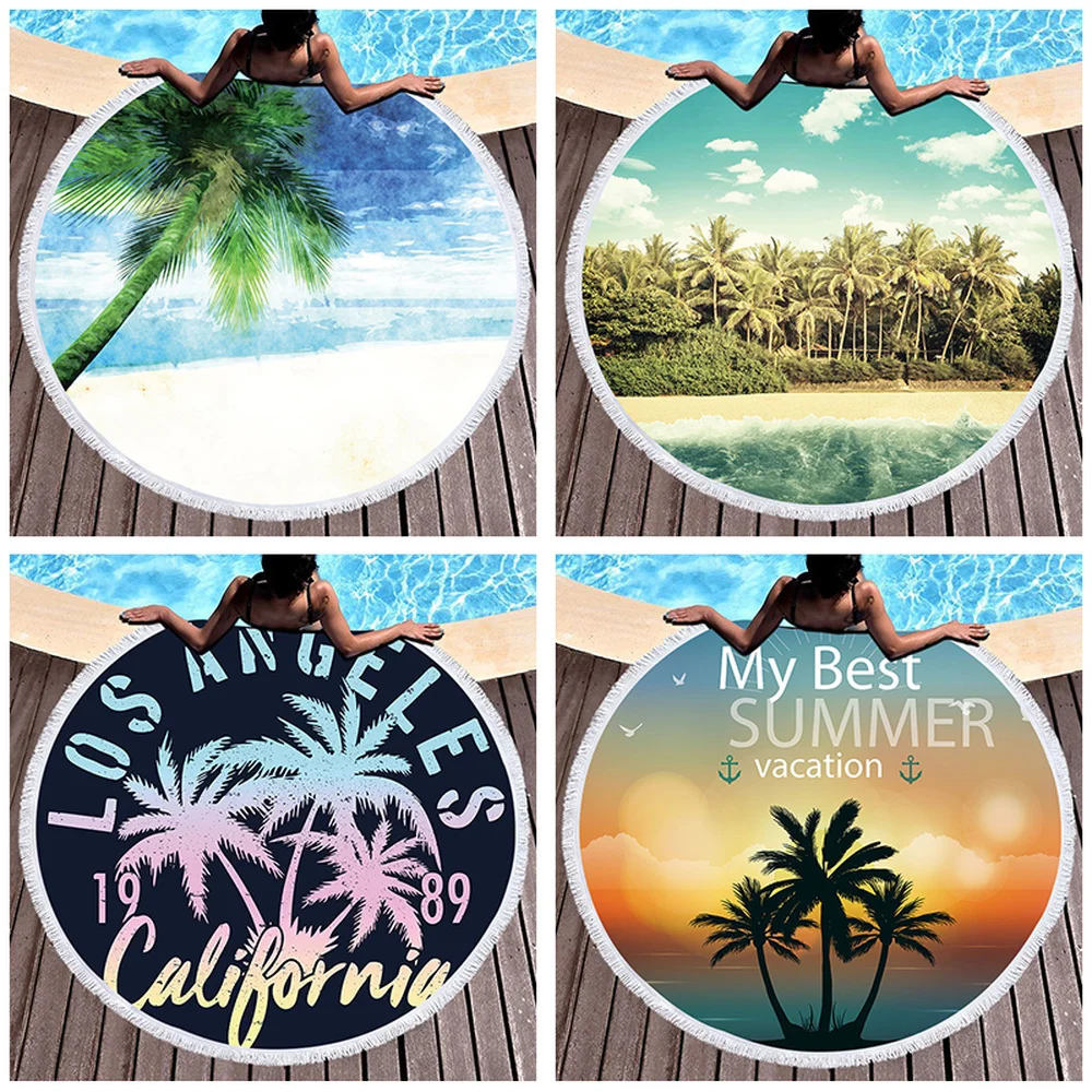 Летнее круглое махровое полотенце в стиле бохо, 420 г, с мандалой, s 150 см