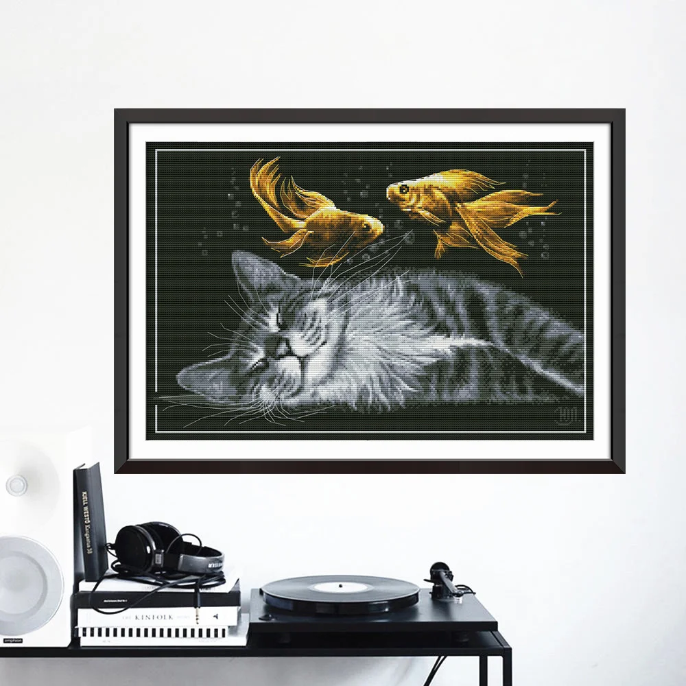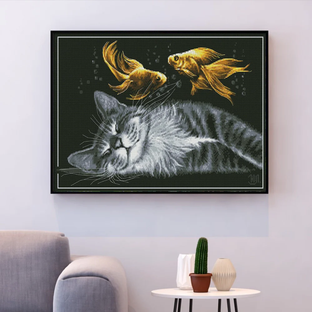 HUACAN вышивка крестиком кошка животные набор для рукоделия полный ...