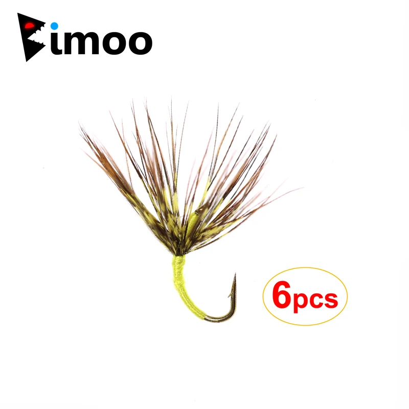 Bimoo 6 шт.лот желтые Тенкара влажные мухи размер #12 простые озерные потоки родной коричневый Брук форель приманки мухи