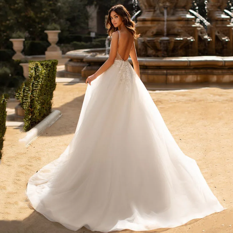 Шикарное платье для невесты, без рукавов, с V-образным вырезом