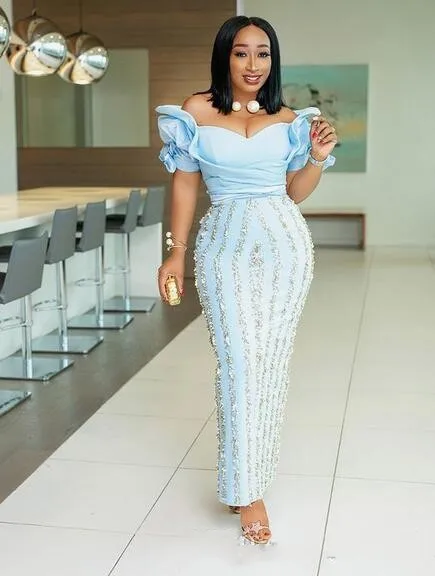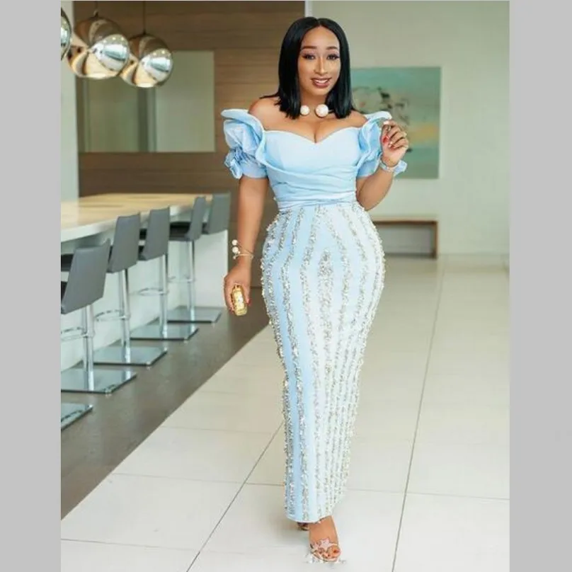 Светильник-голубое женское вечернее платье длиной до щиколотки с оборками