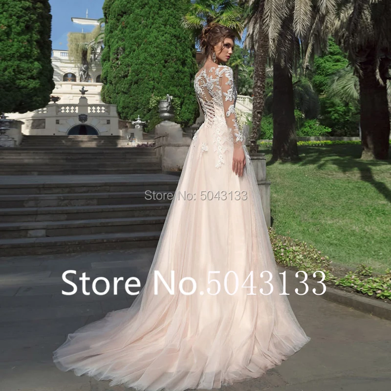 Кружевное ТРАПЕЦИЕВИДНОЕ свадебное платье с бисером, аппликацией и длинным рукавом, свадебные платья на пуговицах со шнуровкой, длиной в Пол, цвета шампанского, 2021