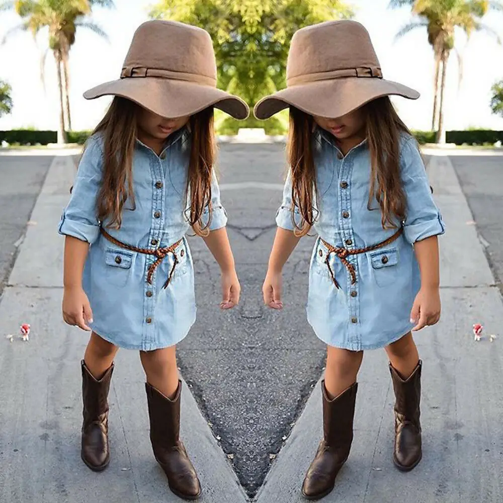 Одежда для маленьких девочек Pudcoco, джинсовое Короткое мини-платье, джинсовое Повседневное платье-рубашка с длинным рукавом Вечерние