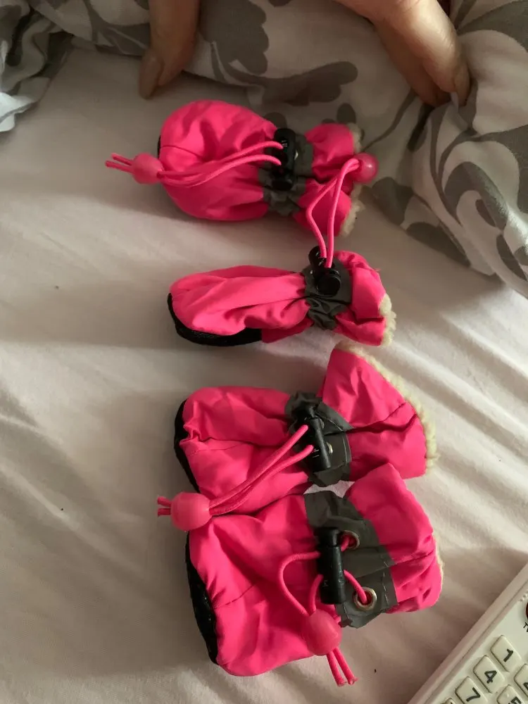 Топ- топки прибыли в точном размере и в точном описании. Из всех видов обуви для собак- наиболее удобные по резинке для утяжки и потому не теряются!