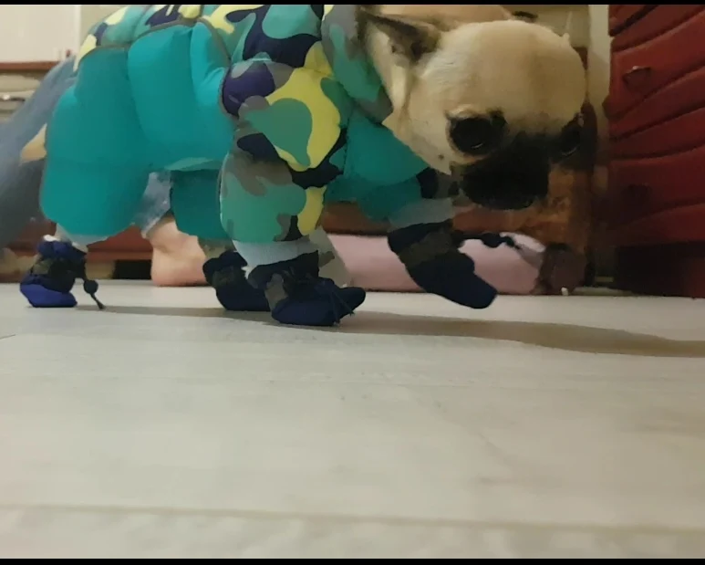 Прекрасные ботиночки,точнее носочки,мой пудель в первый день уже бегал в них с удовольствием,после них можно приучать к ботиночкам с Толстой подошвой,рекомендую.