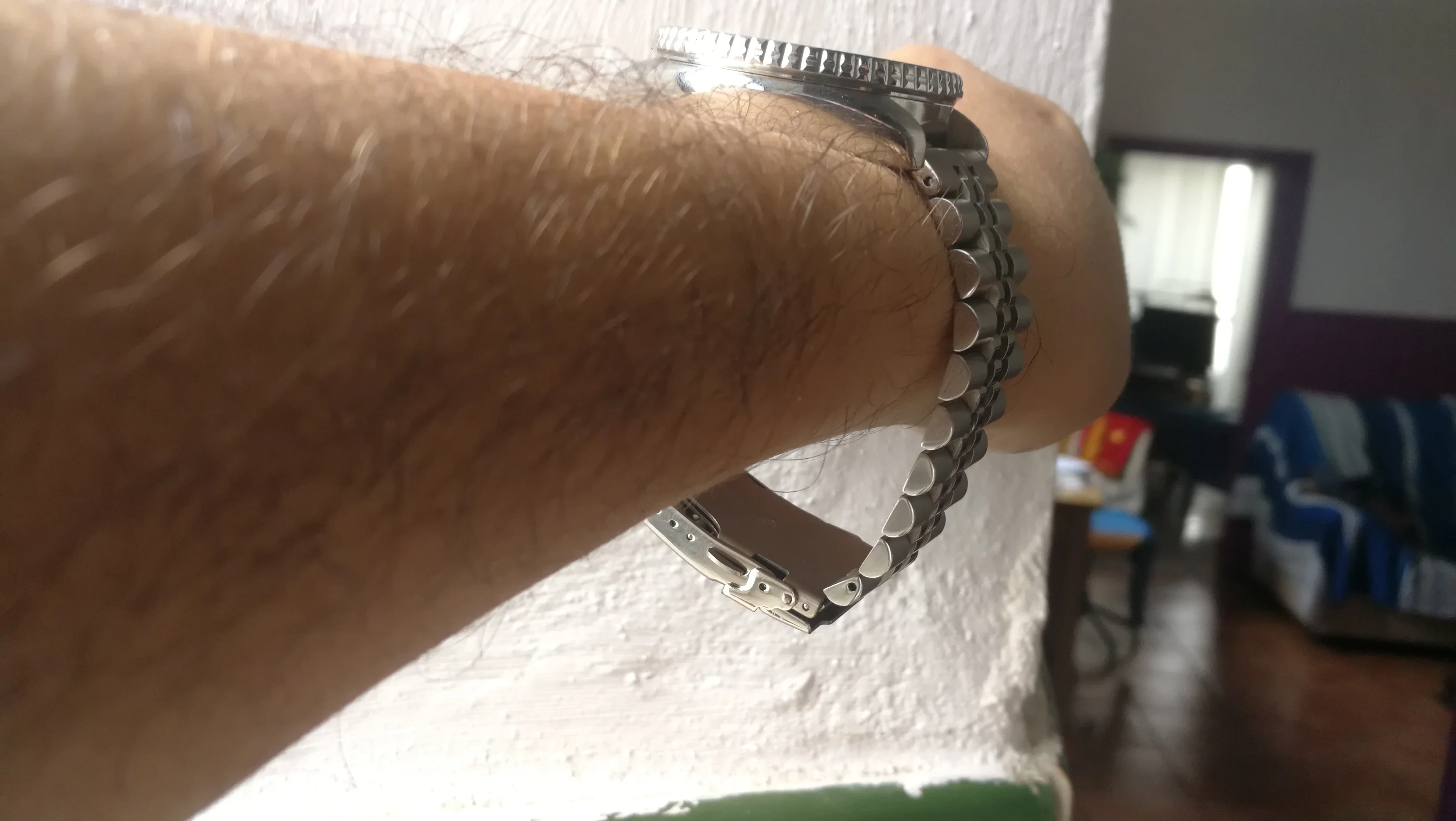 Этот браслет имеет только несколько звеньев, чтобы отрезать его длину. Поэтому ремешок большой на запястье, и я не могу нарезать больше. Кроме того, крышка застежки свободная и открывается. Гнусный, я не рекомендую этот браслет.