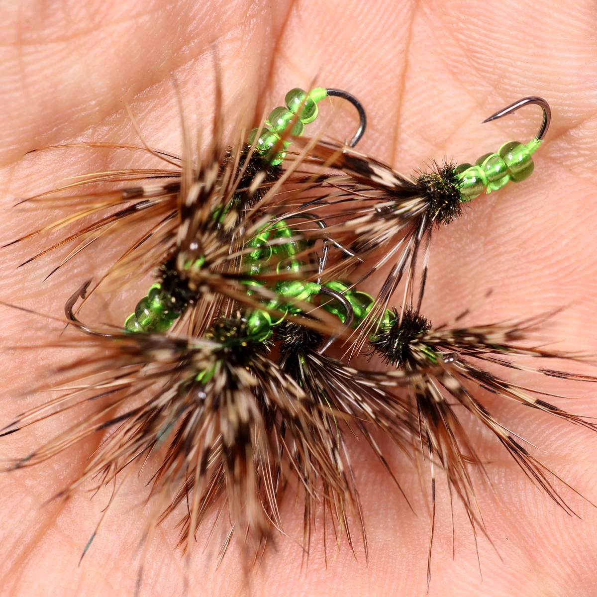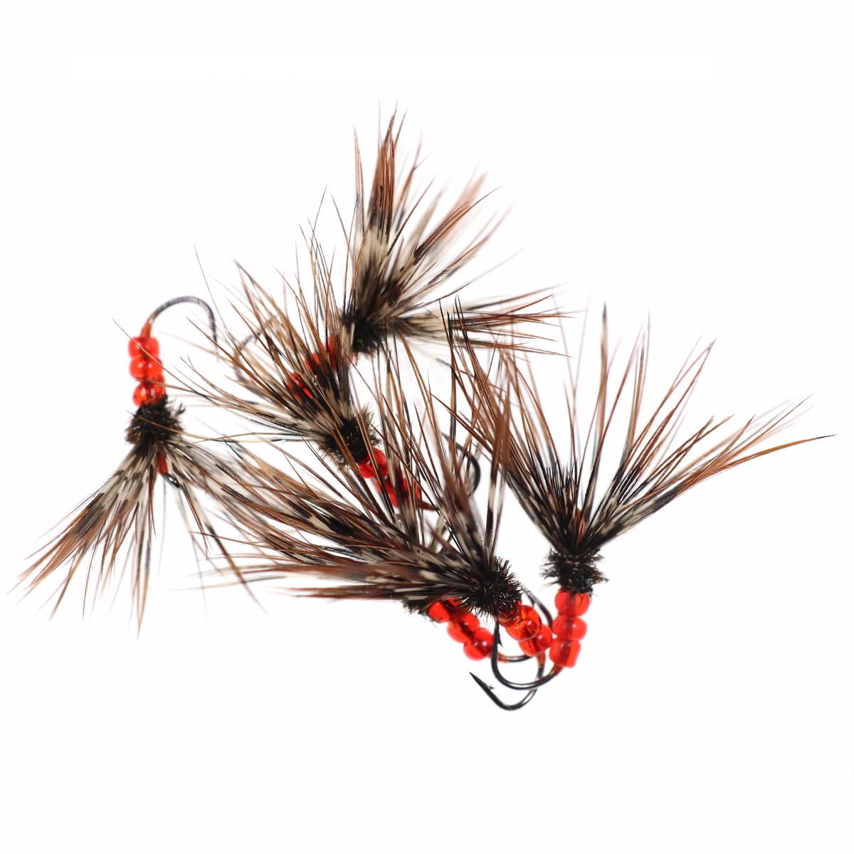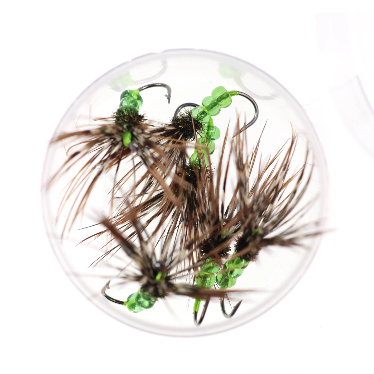 Bimoo 6 шт./лот красно-зеленые рыболовные мушки Tenkara с пластиковой шариковой капельницей превосходная простая муха коричневый Брук Радужная Форель рыболовная муха