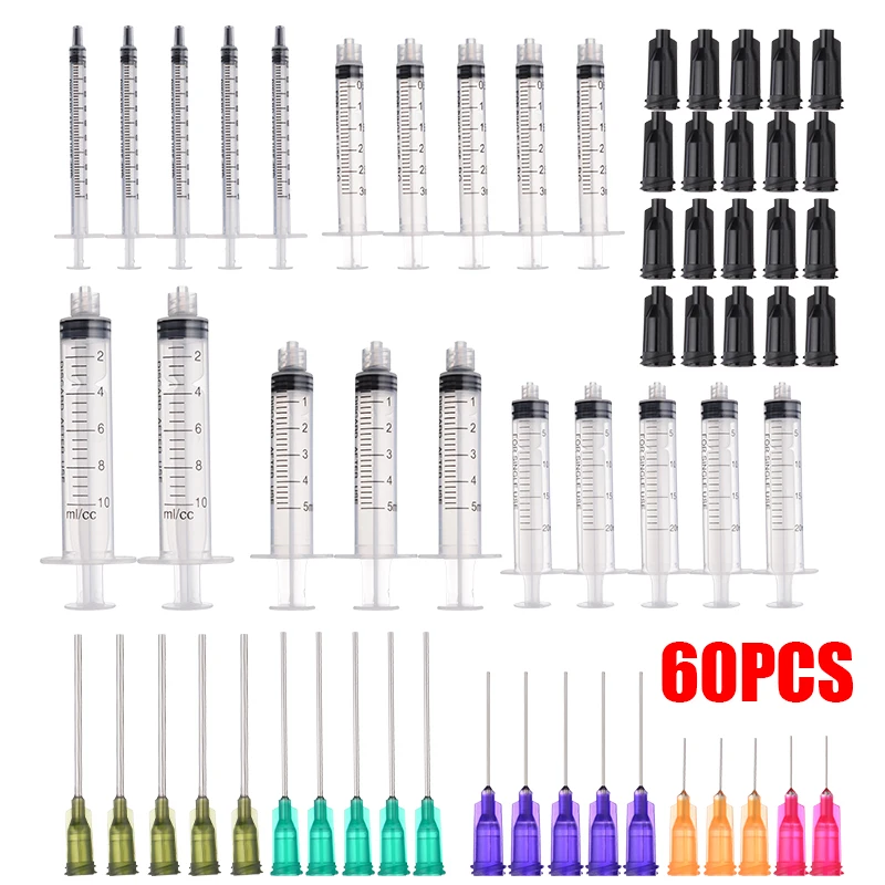 60Pcs новая 1351020 мл шприцы с тупым наконечники игл и шапки промышленные Применение для эфирных Масла научные лаборатории ремесла чернила