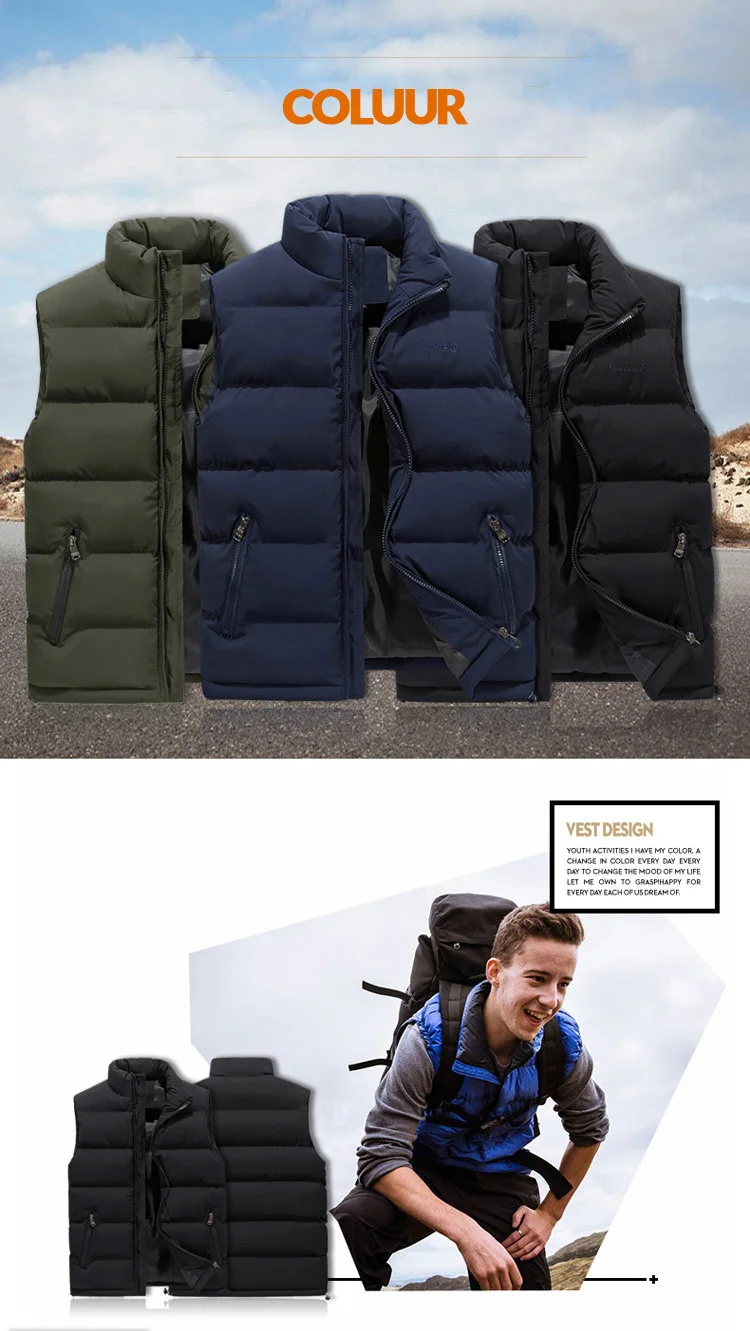 Трендовый Мужской осенне-зимний жилет с воротником-стойкой уличный ...