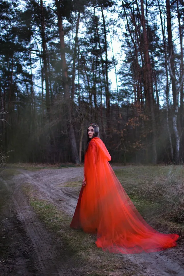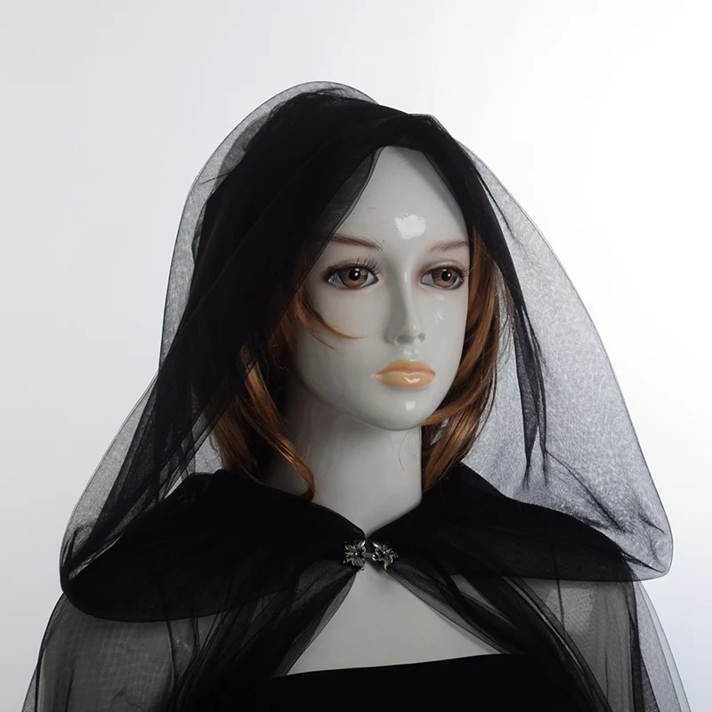 Женский тюлевый плащ, черного и красного цветов, мягкий накидка в пол с вуалью, накидка для Хеллоуина