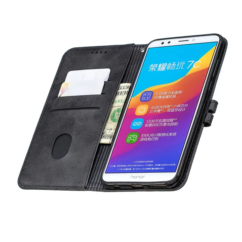Чехол-бумажник с подставкой для Honor 7C, кожаный