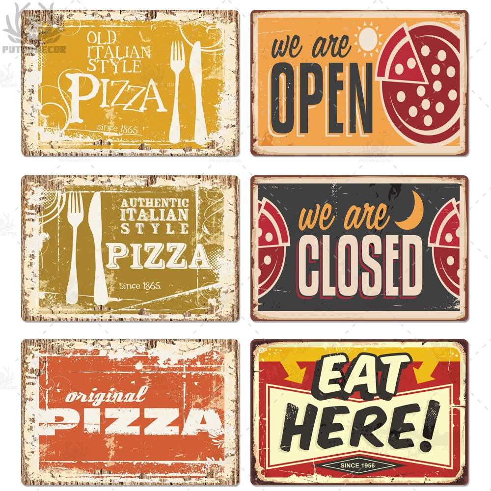 Зона для пиццы, металлический винтажный металлический знак, Настенный декор для кафе, бистро, ресторана, зона для пиццы, Оловянная табличка