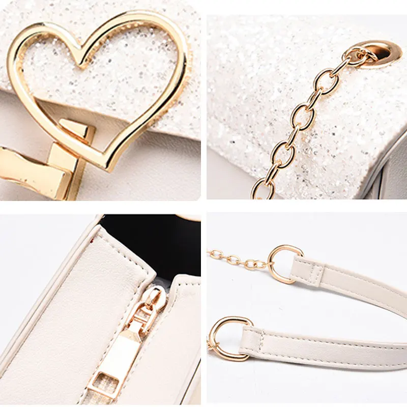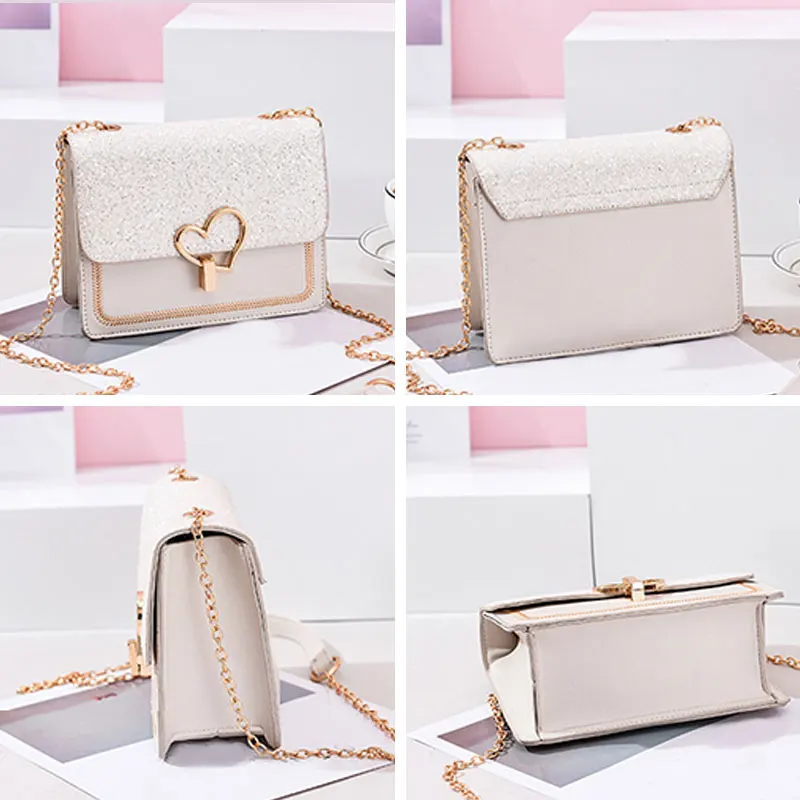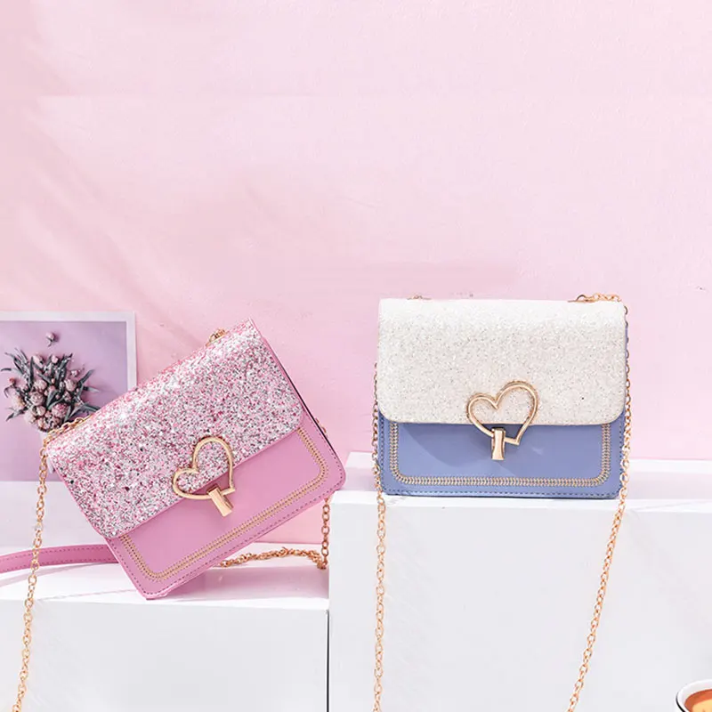 Новое поступление 2020, женская сумка, сумки через плечо для женщин, Сумка с пряжкой в форме сердца, Сумка с блестками и цепочкой, сумки через плечо из искусственной кожи