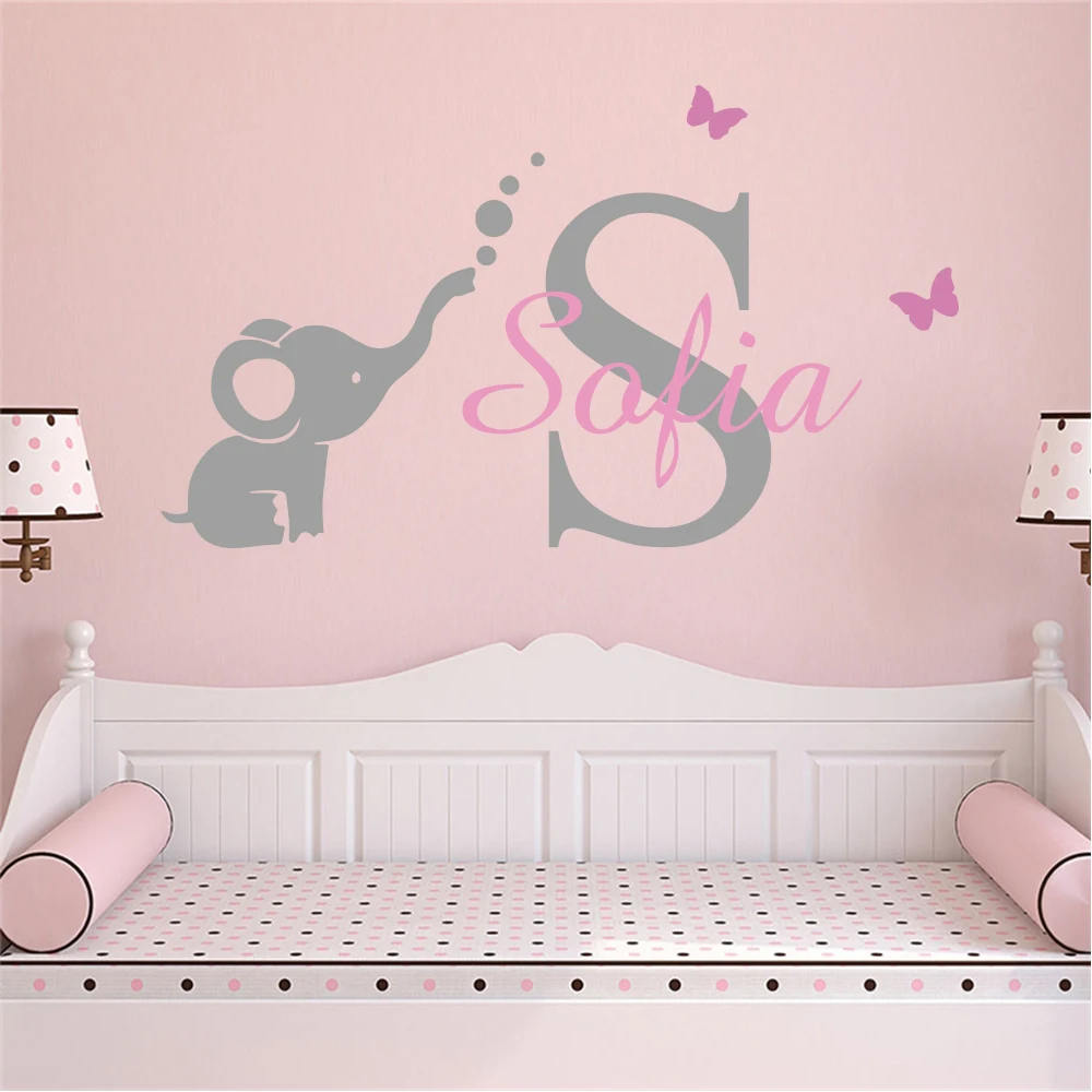 Мультяшный стиль бабочки пользовательское имя настенные наклейки для девочек детские комнаты декор Виниловая Наклейка Настенная женская спальня наклейка художественные наклейки