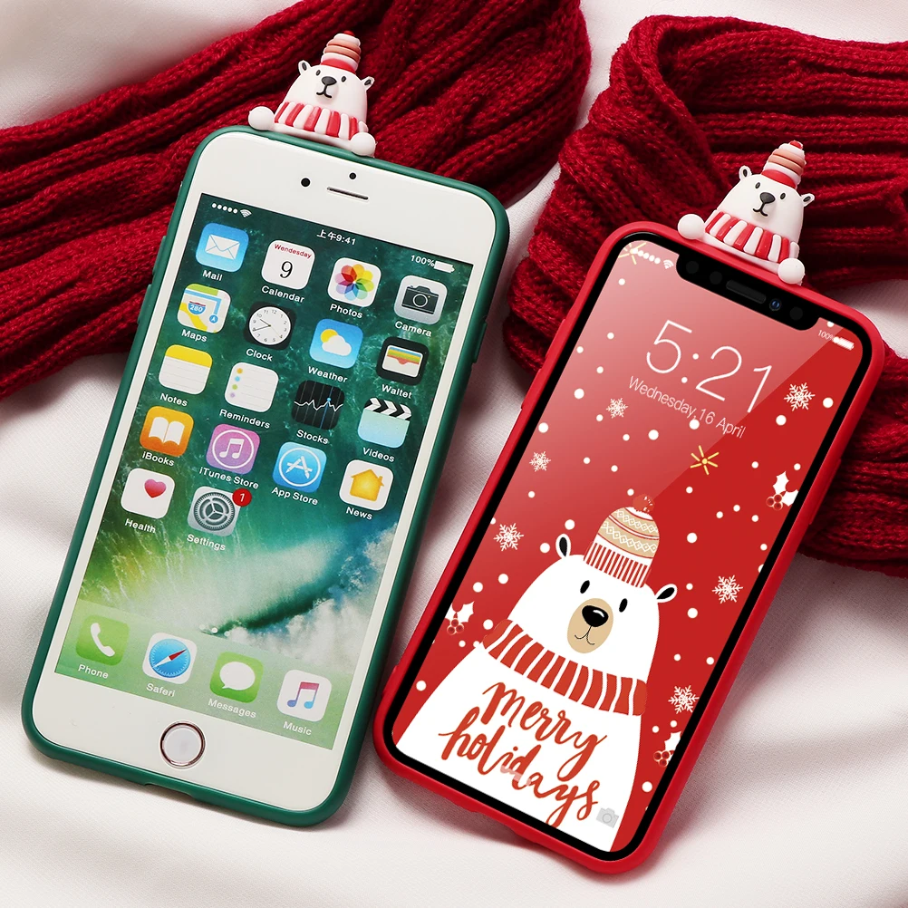 Чехол для iPhone 11, 12, 13 Pro, XS Max, mini, XR, X, SE, 7, 8, 6, 6S Plus, 7Plus, с изображением рождественского оленя, мягкий чехол с медведем, 2020