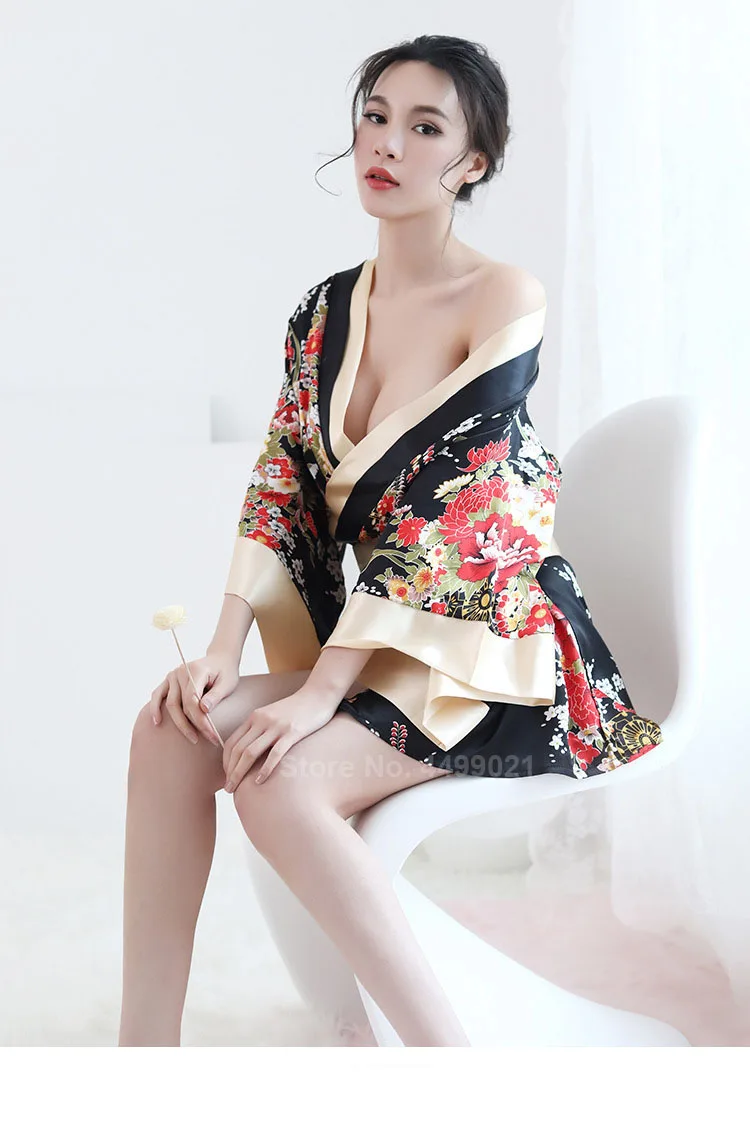 Пижама Yutaka Obi Женская в японском стиле, Короткая свободная Пижама, одежда для сна гейши для девушек, привлекательная хаори, пижама из атласа и шелка с цветочным принтом, домашняя пижама