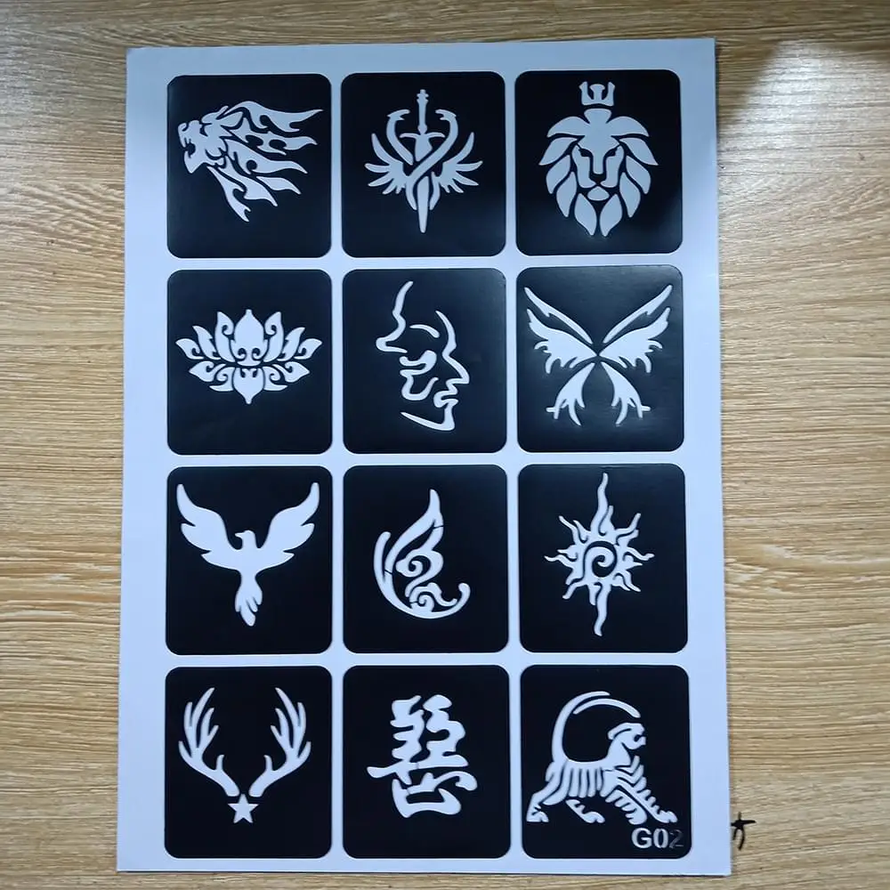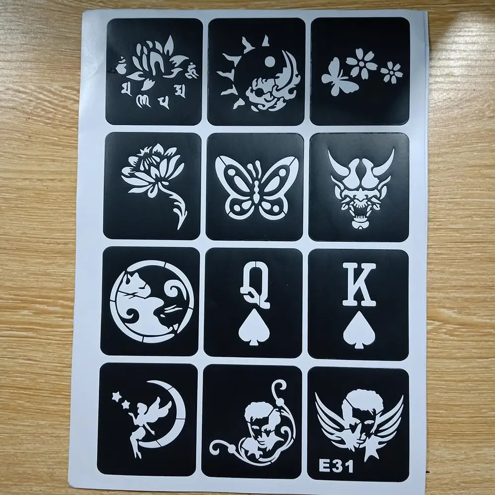 Трафареты для татуировок хной трафарет с блестками, мультяшный траф...