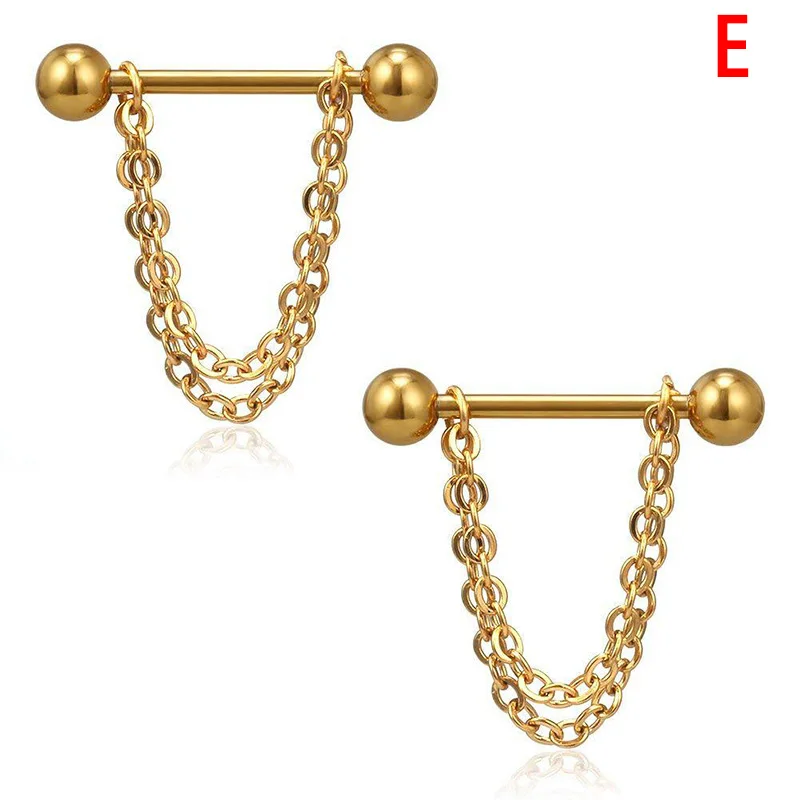 2 шт.компл. из нержавеющей стали звено пирсинг соски груди кольца-гвоздики штанга цепи кулон пирсинг тела ювелирные изделия 5 стилей