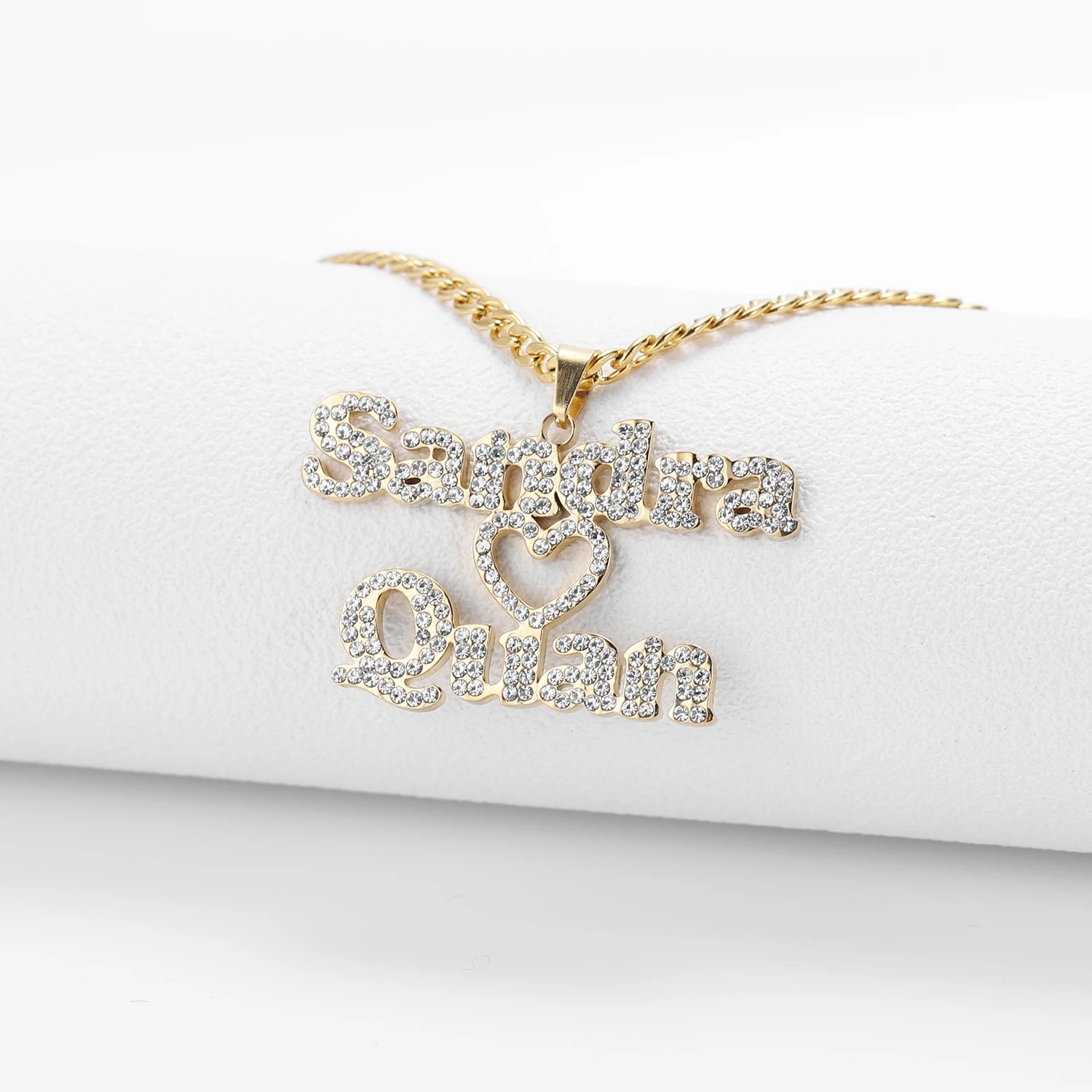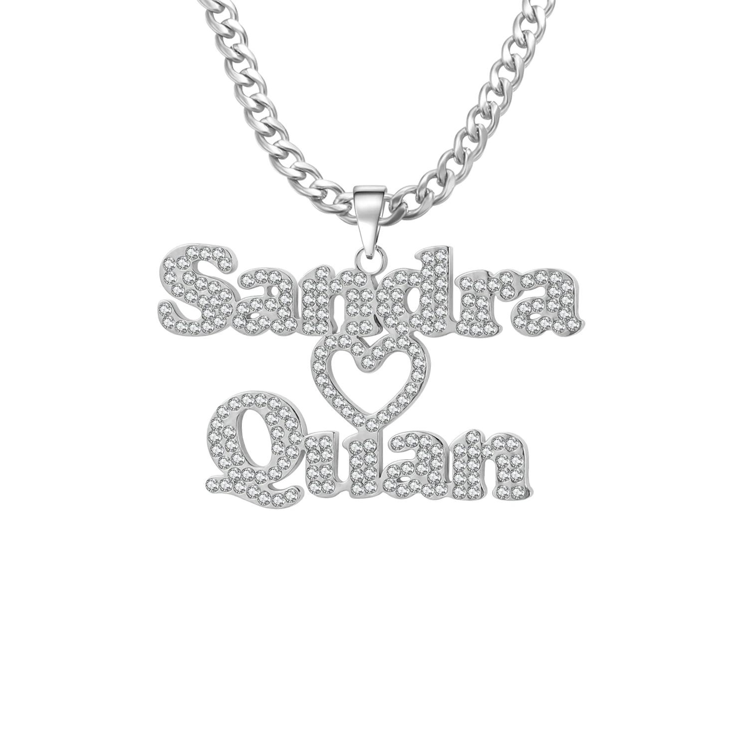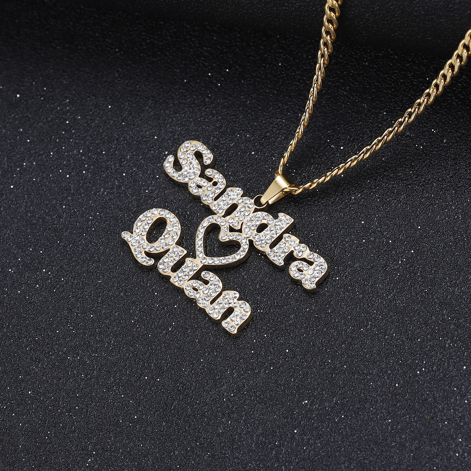 Индивидуальное ожерелье с двойным именем из циркония, персонализированное ожерелье с табличкой с надписью Холодное сердце, подвеска для пары ювелирных изделий