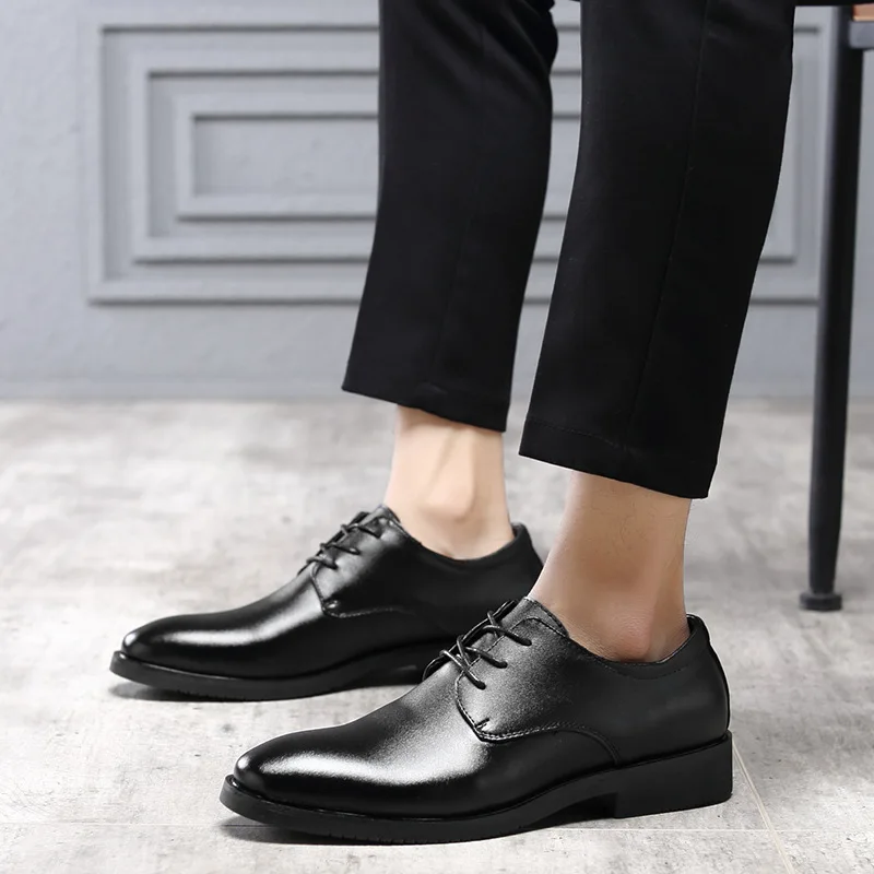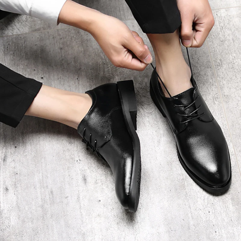 Мужская деловая кожаная обувь на шнуровке, в британском стиле